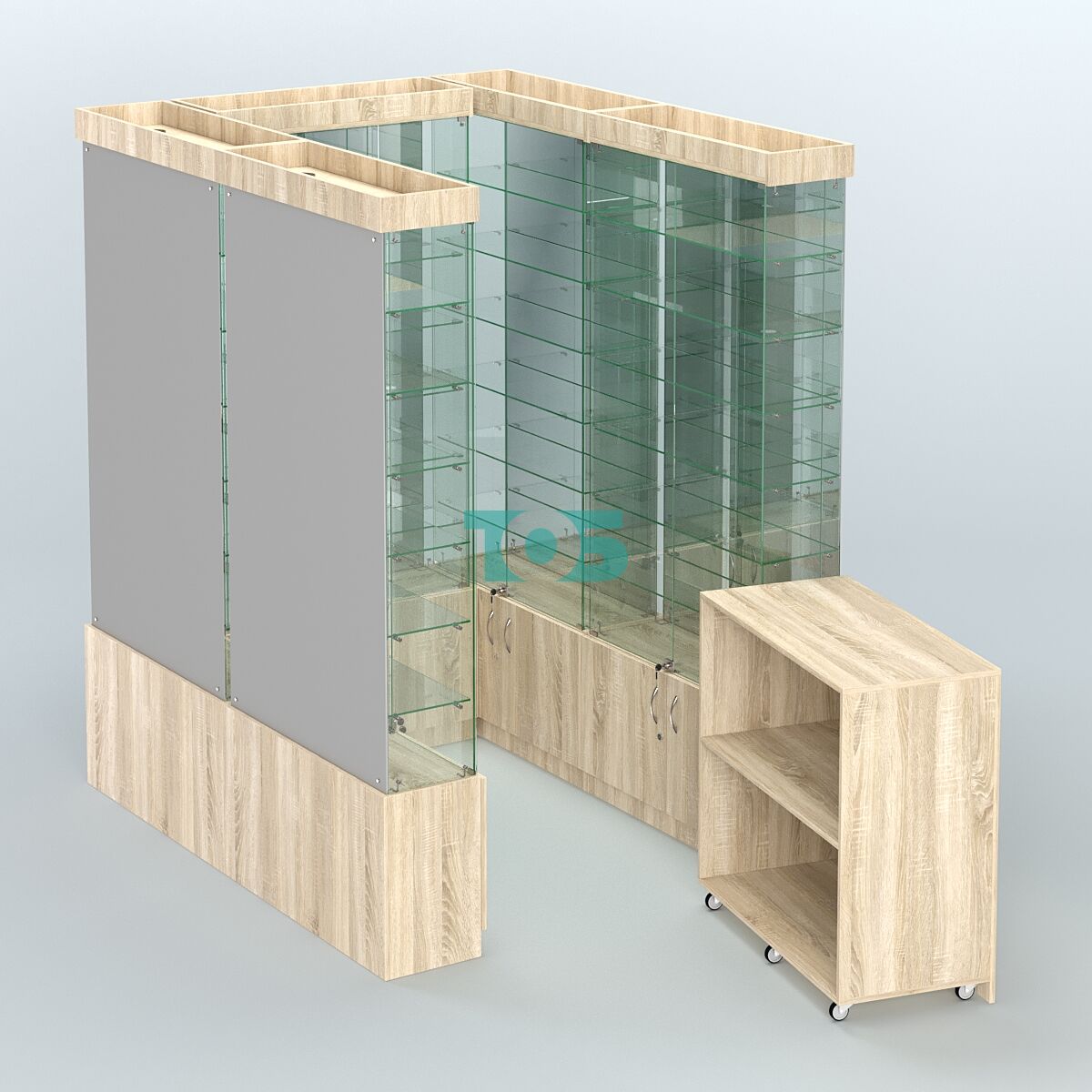 Тумба продавца: открытая.