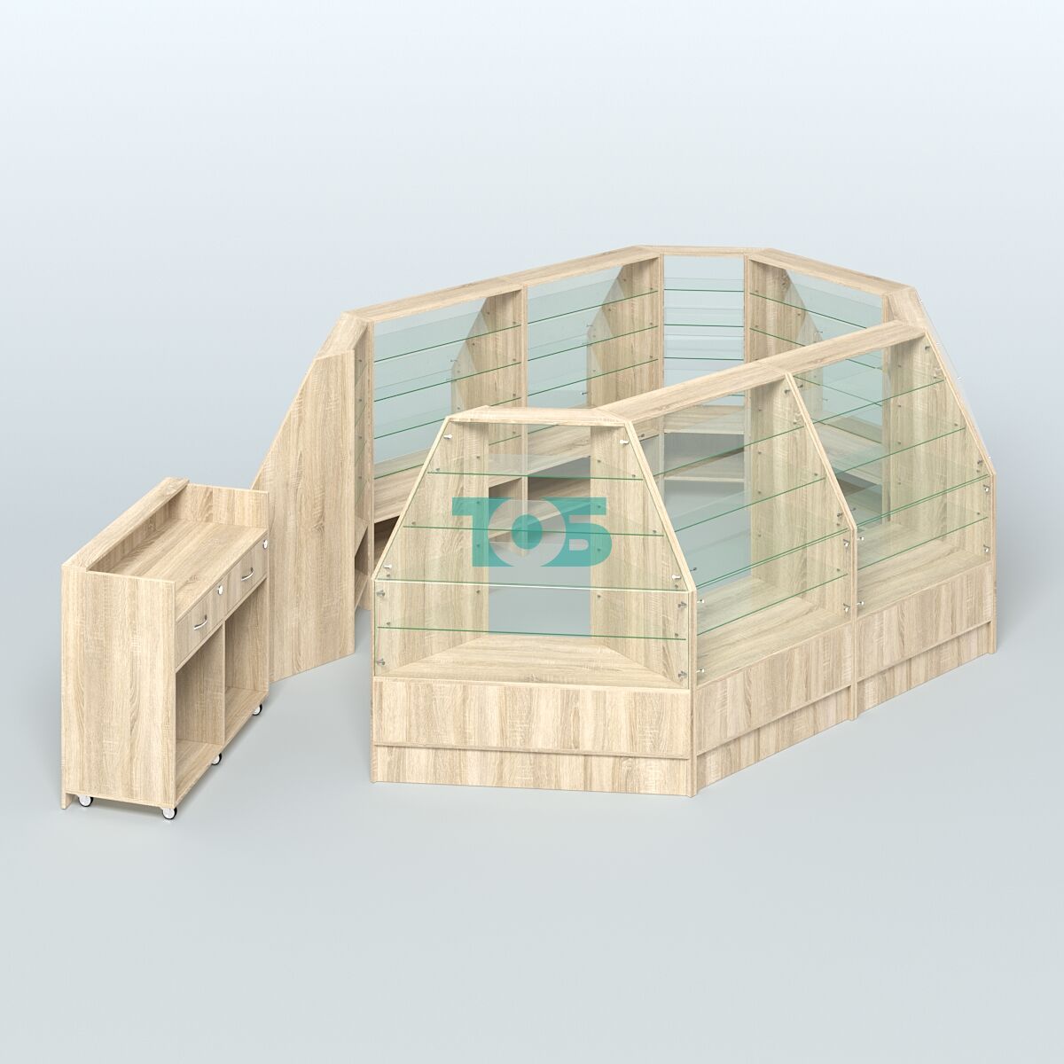 • Низкий торговый остров серии Алмаз №2 средний, Дуб Золотистый