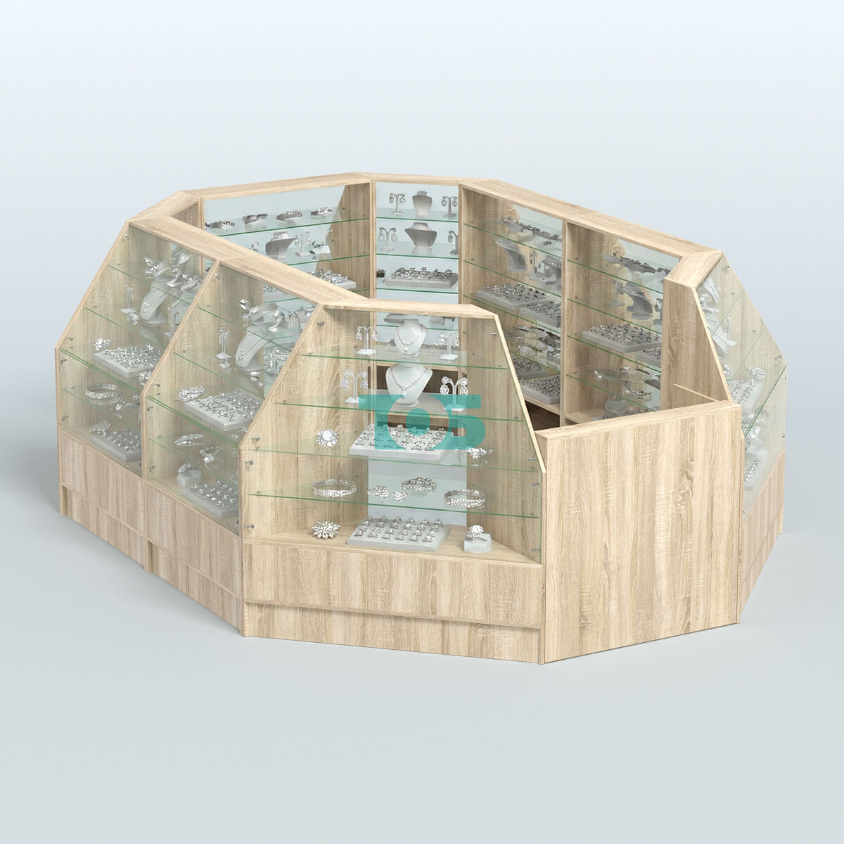 • Низкий торговый остров серии Алмаз №2 средний, Ясень Анкор светлый