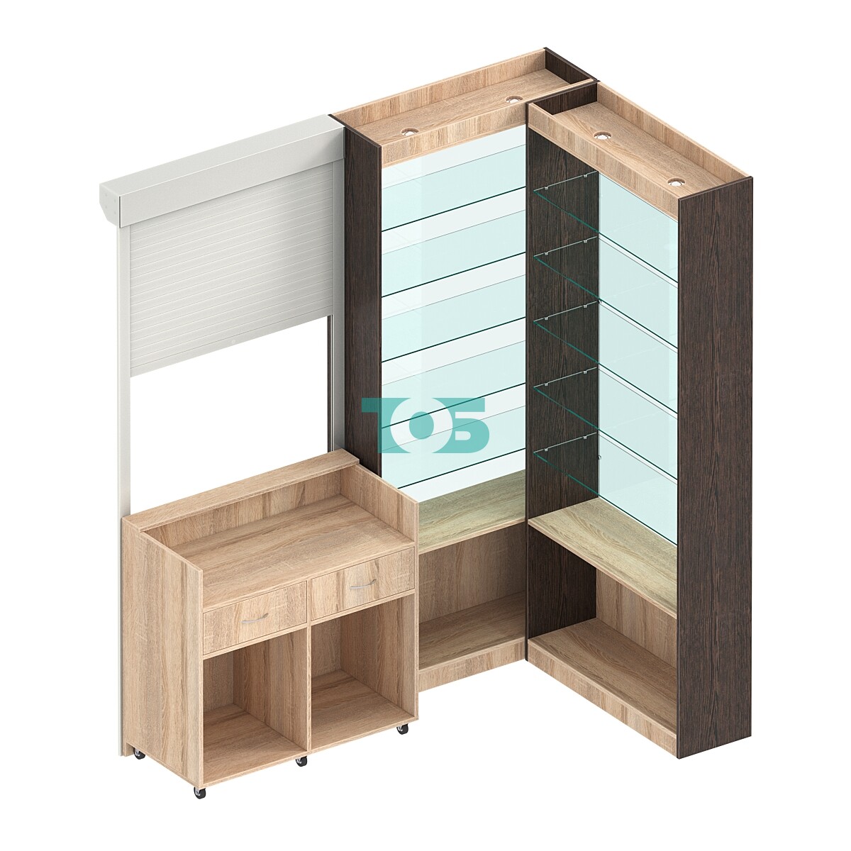 Состоит из двух витрин типа ЭКОНОМ глубиной 300 мм.