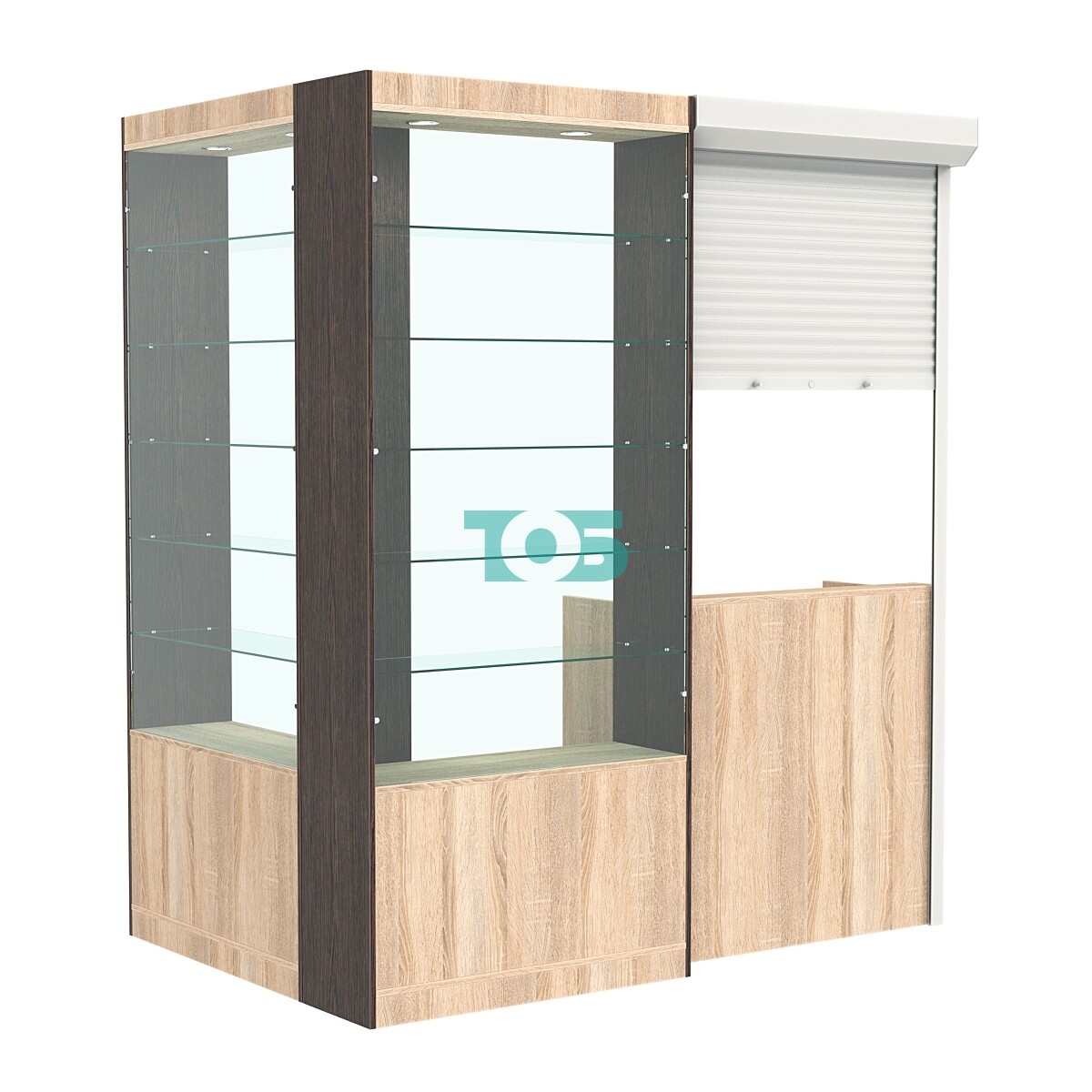 Угловой павильон №1-5П представляет собой компактное торговое пространство площадью 2,16 кв. м, предназначенное для организации продаж в различных торговых точках. Павильон оснащён необходимыми элементами для удобной работы продавца и комфортного обслуживания покупателей.