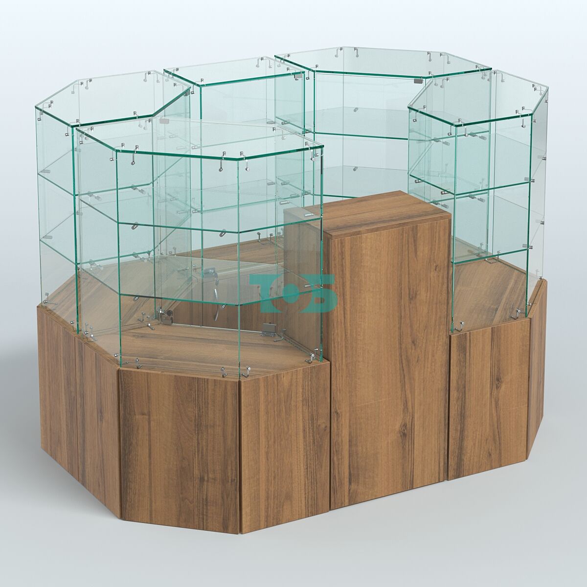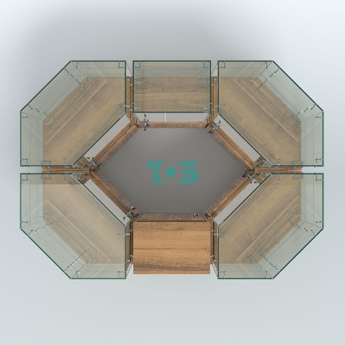 Отличия модели стеклянного островка-павильона серии КОЛЬЦО шестигранного №4: