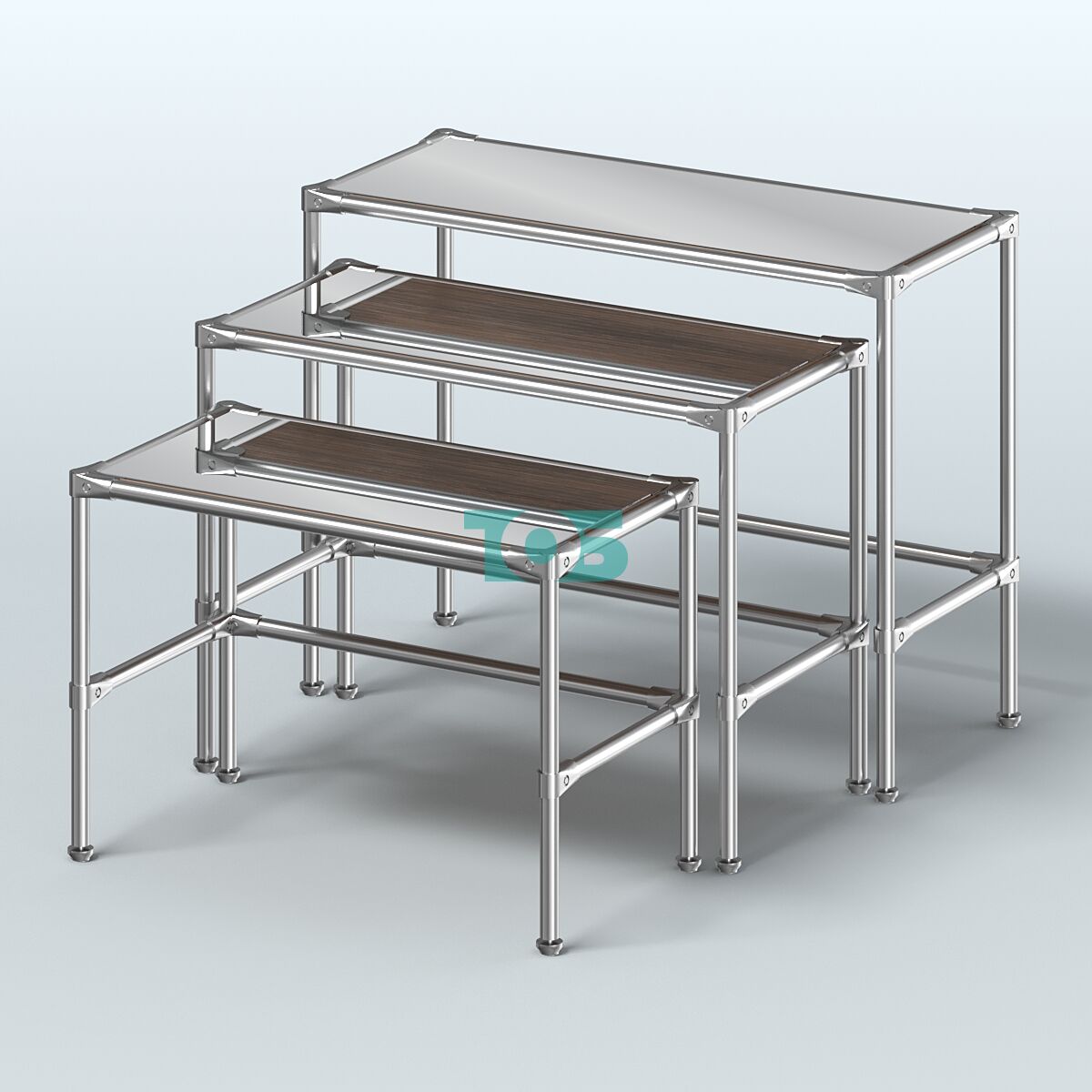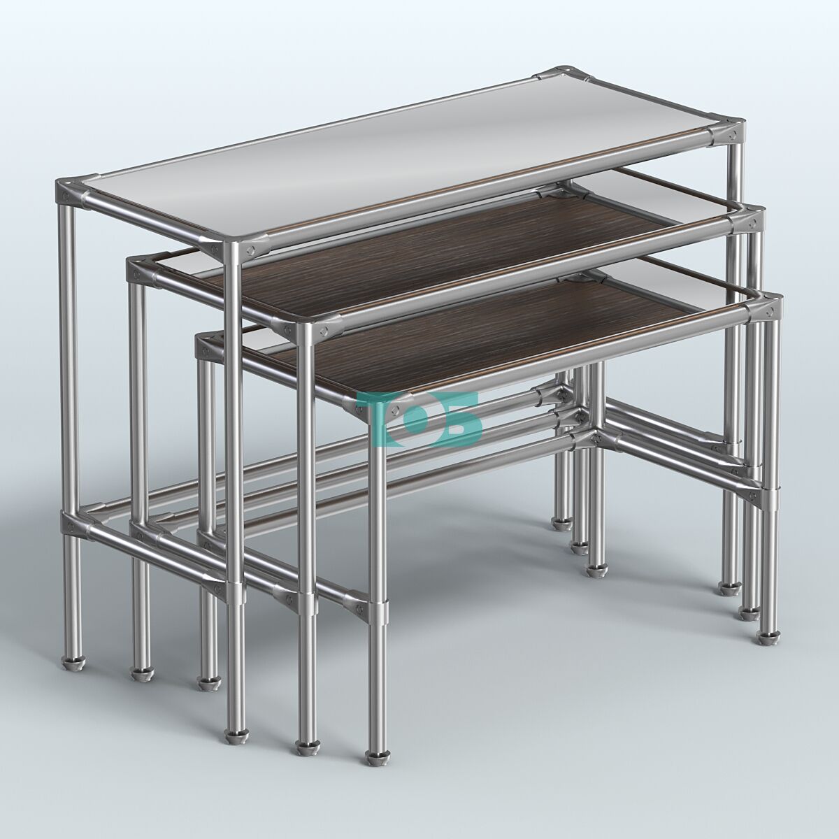 Отличия модели комплекта столов №1-5 с полками зеркало 4 мм:
