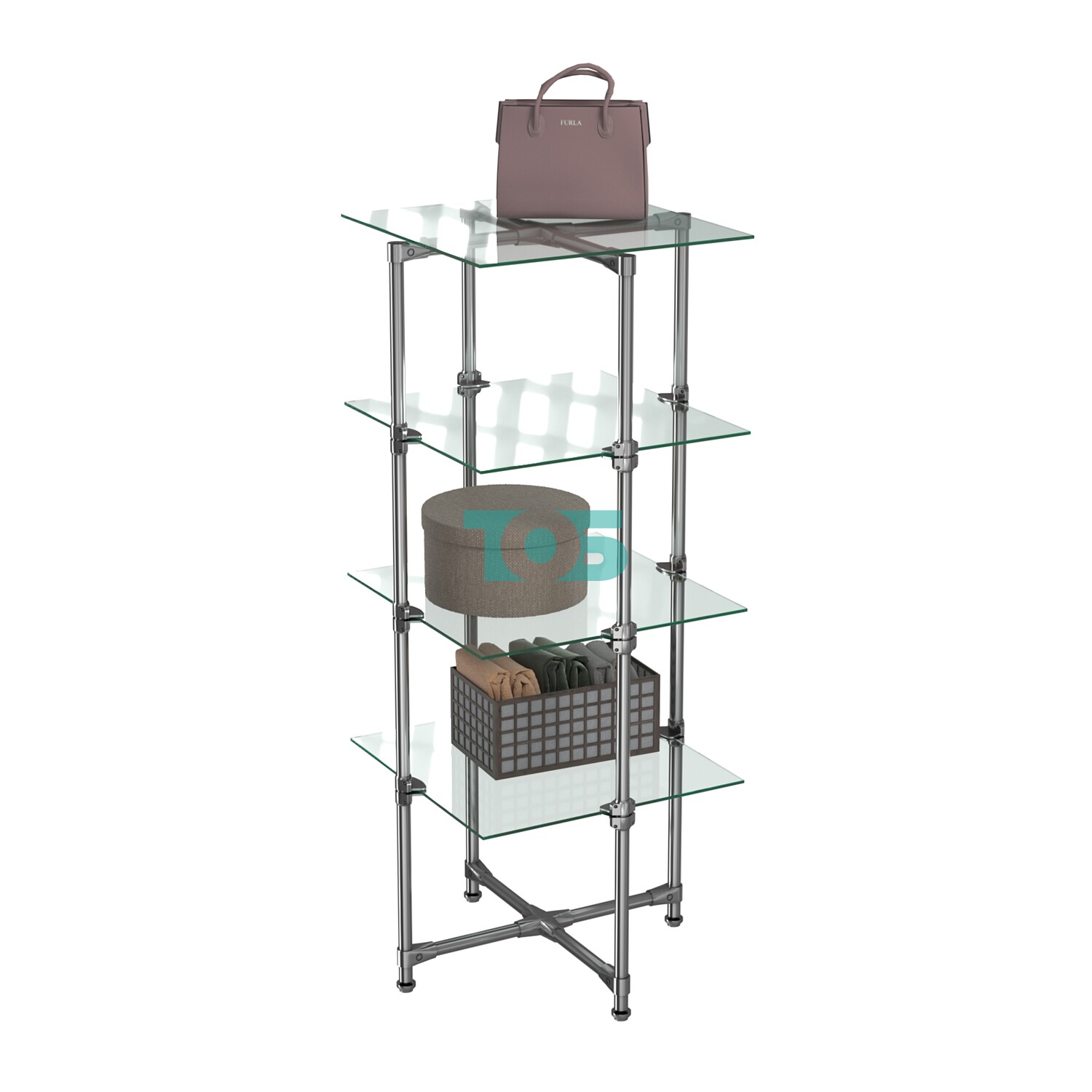 • Круговой обзор: Прозрачные стеклянные полки обеспечивают круговой обзор выставленных товаров, что способствует привлечению внимания покупателей со всех сторон.