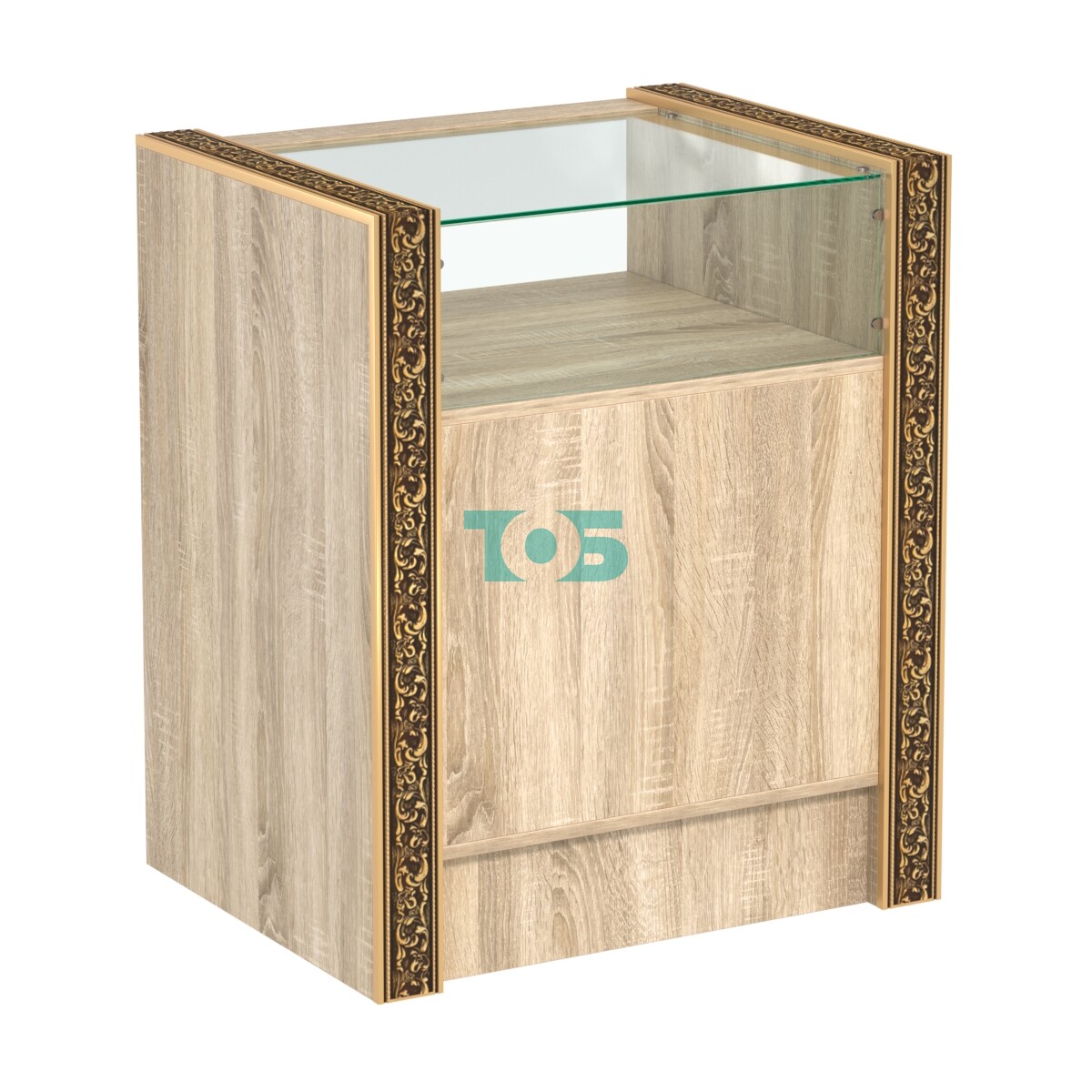 Отличия модели недорогого прилавка с прозрачным верхом и декоративными молдингами №ПДМ-2-600: