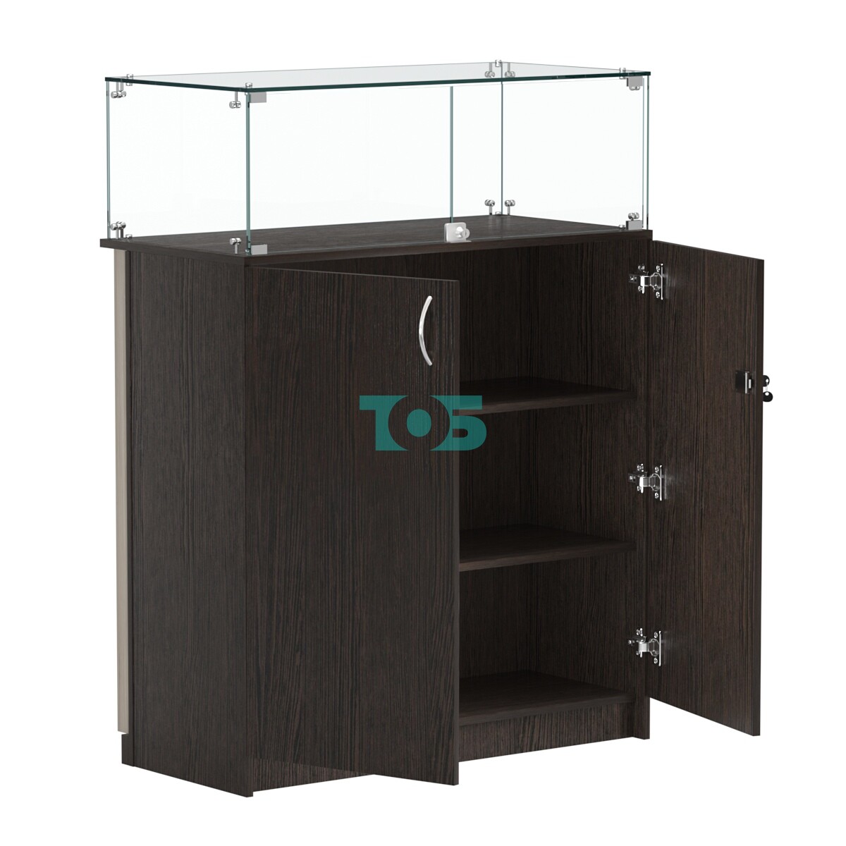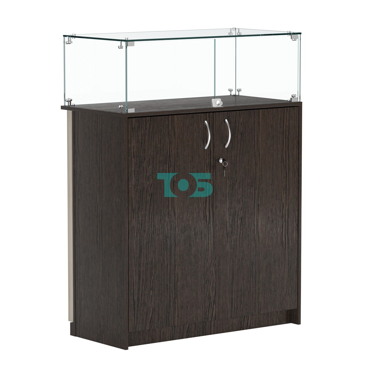 • Торговый прилавок прямоугольный с планками и стеклянным колпаком ВЕРТИКАЛЬ №1, Дуб Венге