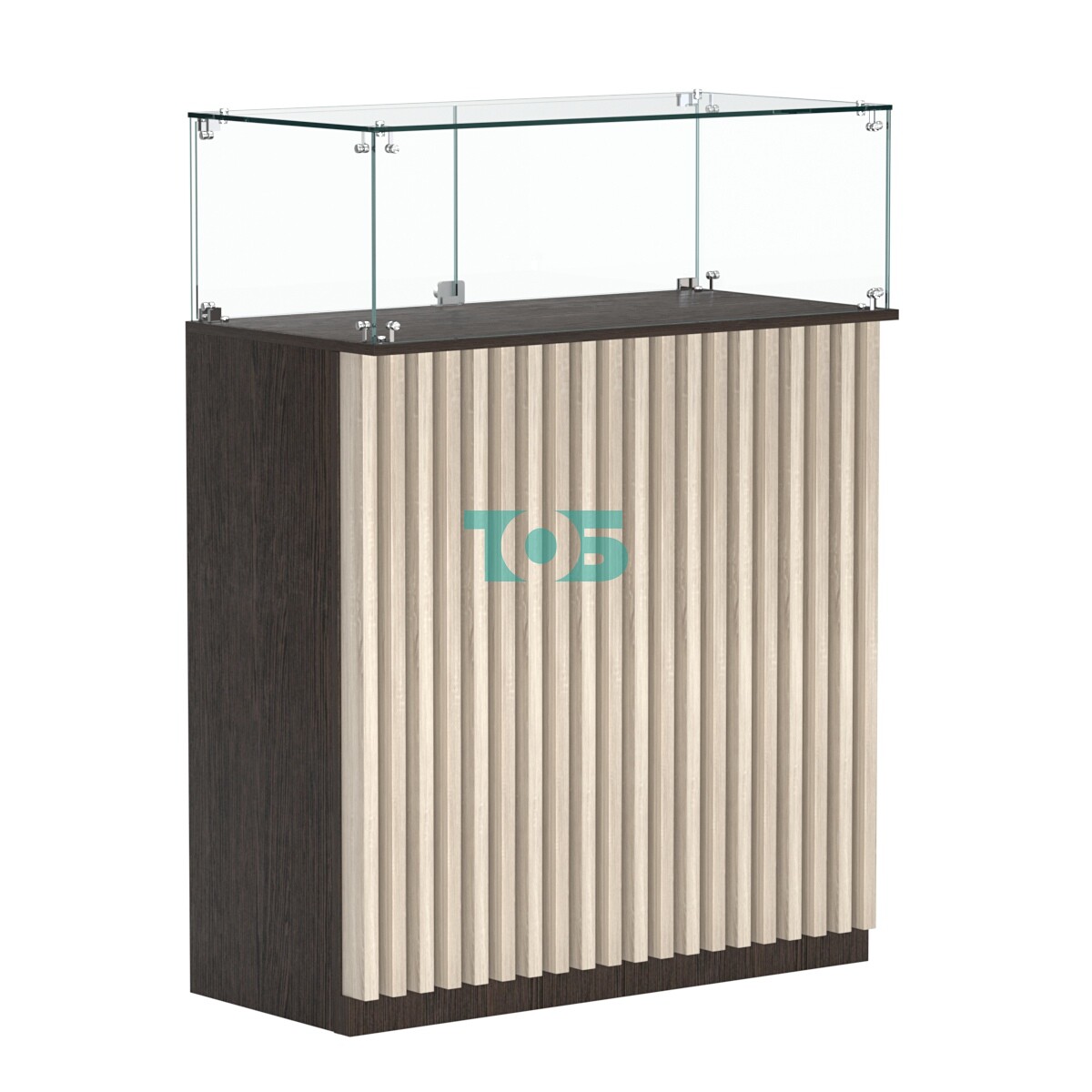 • Торговый прилавок прямоугольный с планками и стеклянным колпаком ВЕРТИКАЛЬ №1, Дуб Сонома + Дуб Венге