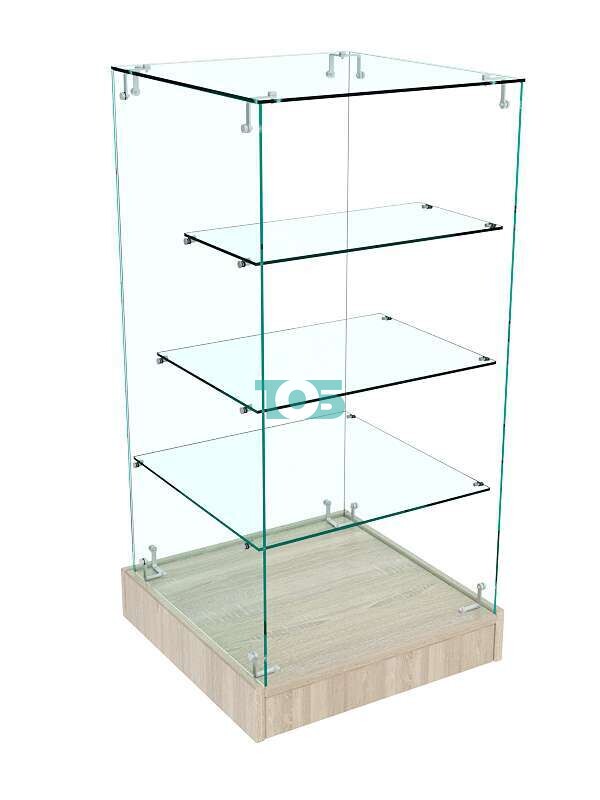 верх выполнен в виде стеклянного каркаса на хромированных уголках;