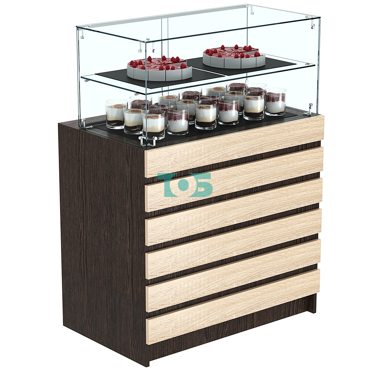 Торговый прилавок со стеклянной надставкой и фасадными панелями №1Э-01