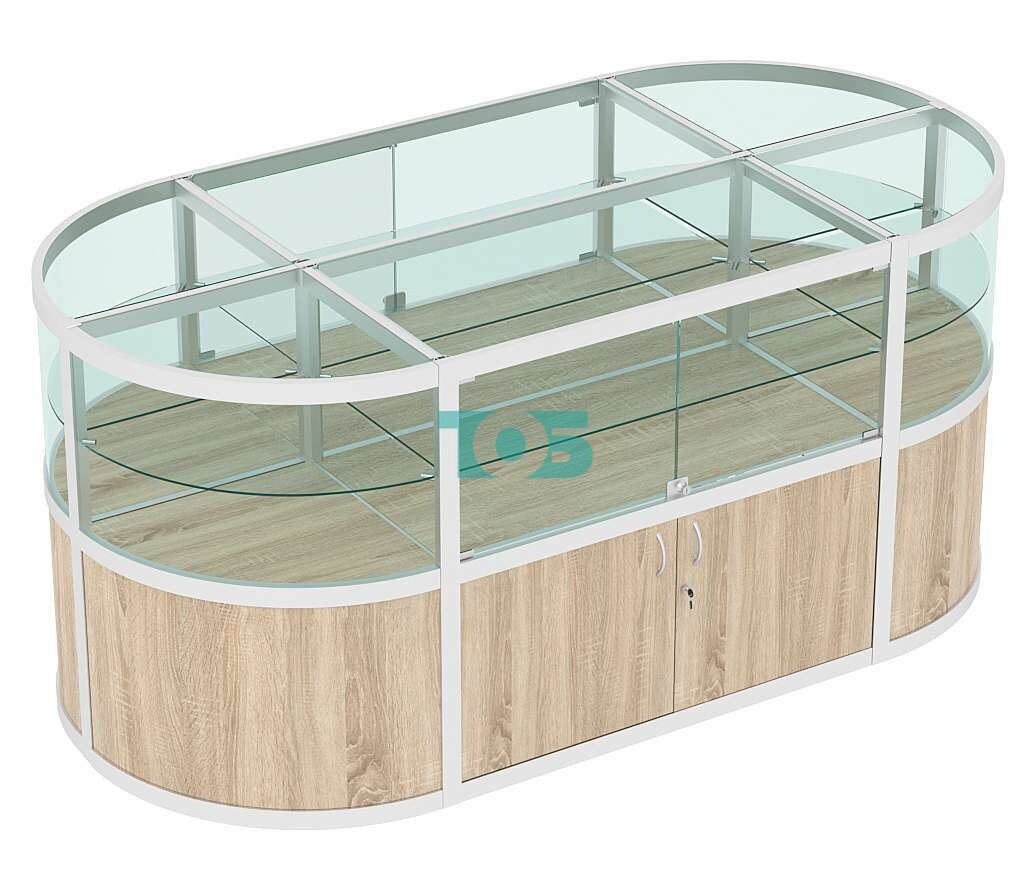 - верх островного прилавка застеклен;