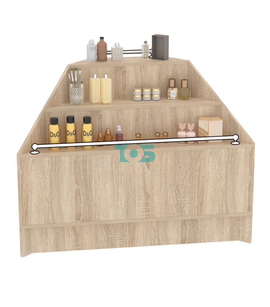 Прилавок-горка угловой №2А с тремя ступенями (внешний угол) — это практичная и функциональная мебельная конструкция, предназначенная для организации пространства в торговых точках. Она позволяет удобно разместить товары и обеспечить лёгкий доступ к ним со стороны продавца, что делает её незаменимым элементом интерьера магазинов и торговых павильонов.
