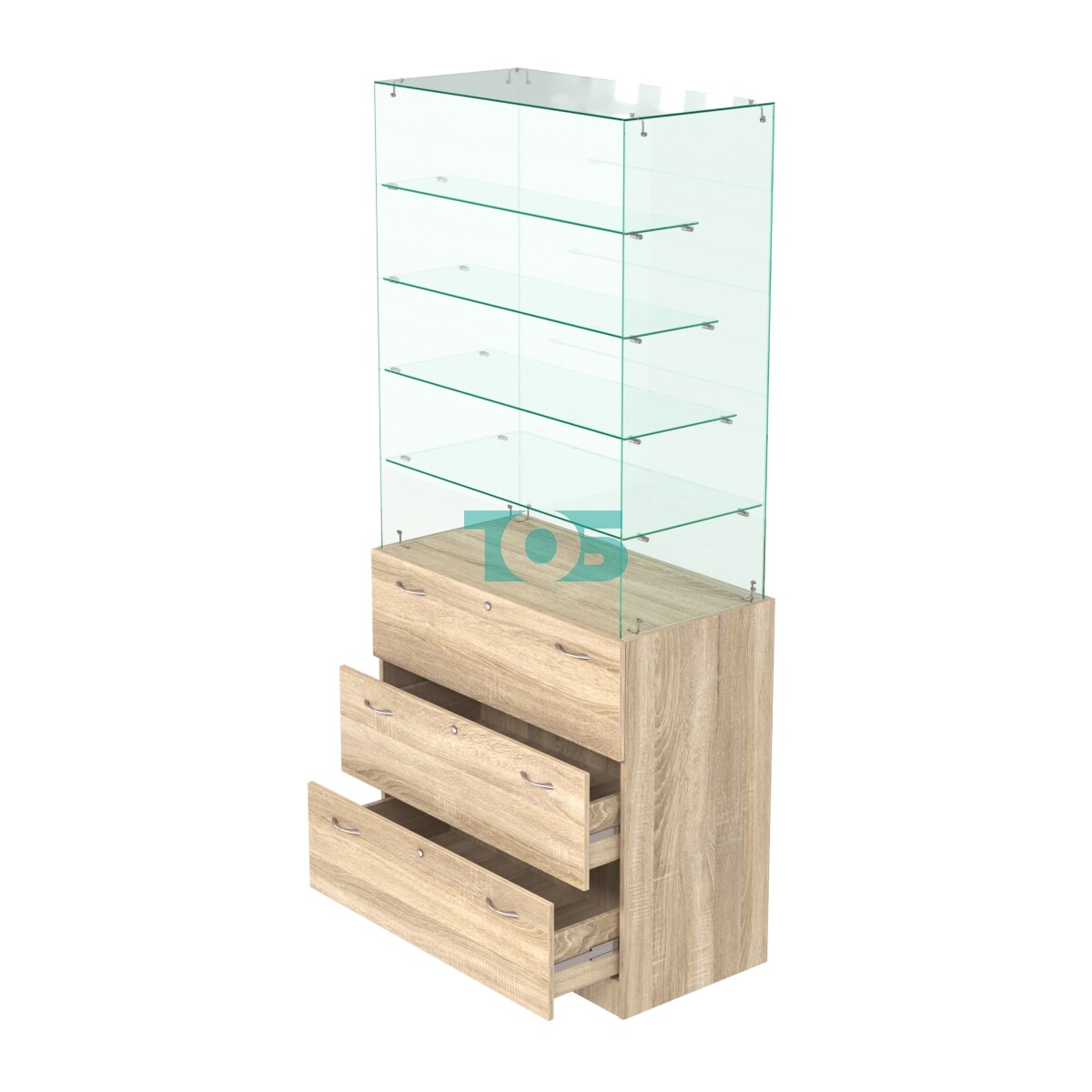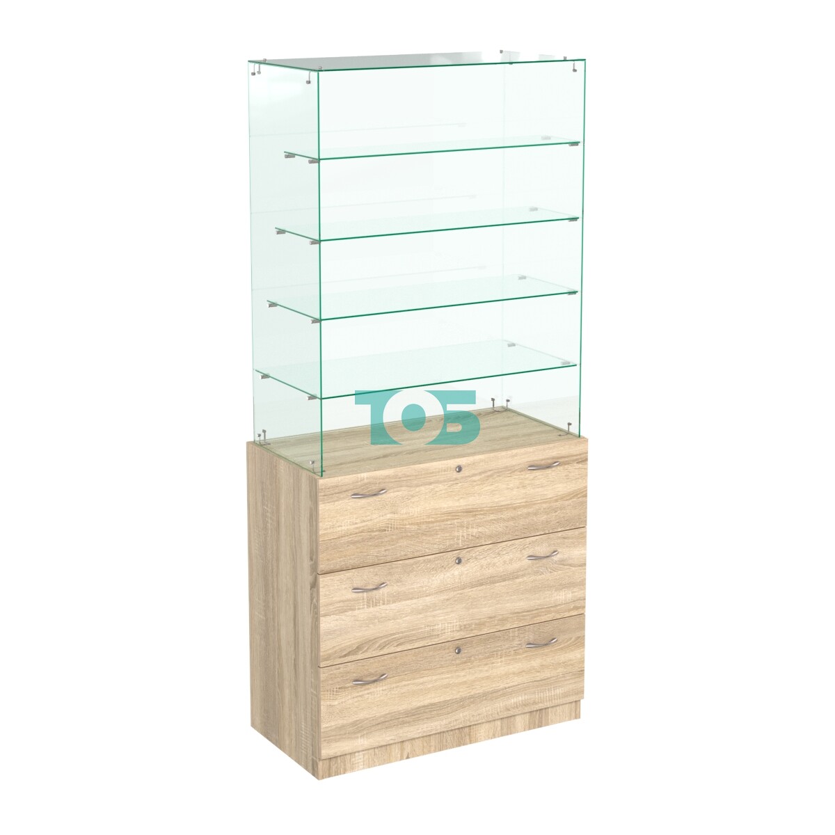 • Прилавок с верхним стеклянным каркасом Селена-9, Дуб сонома