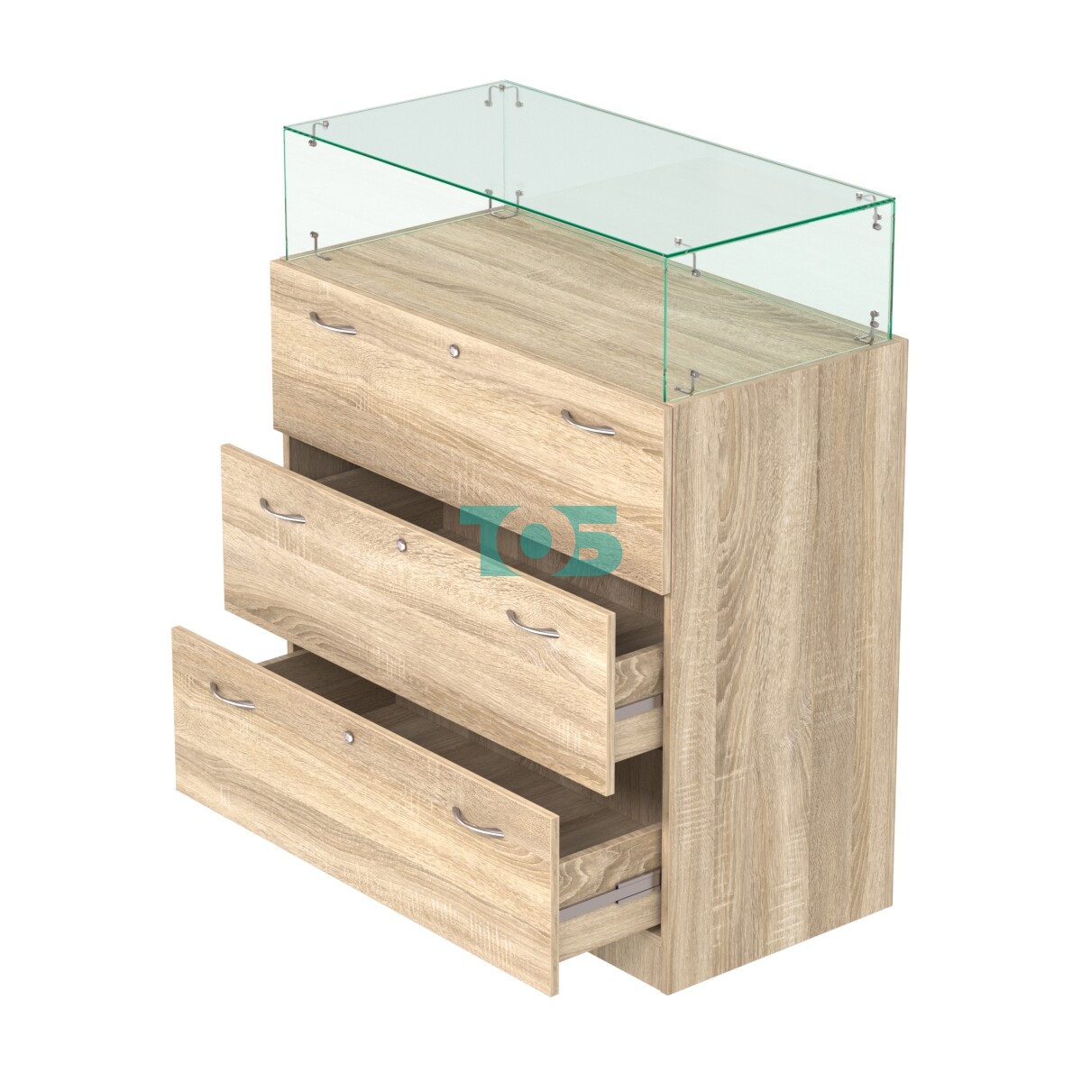 - В накопителе три выдвижных ящика с врезными замками;