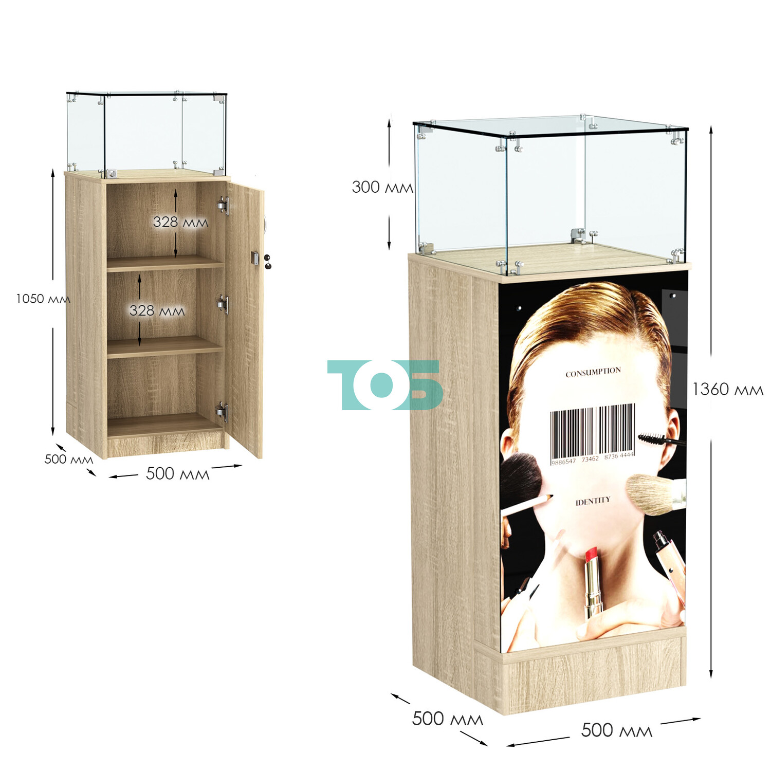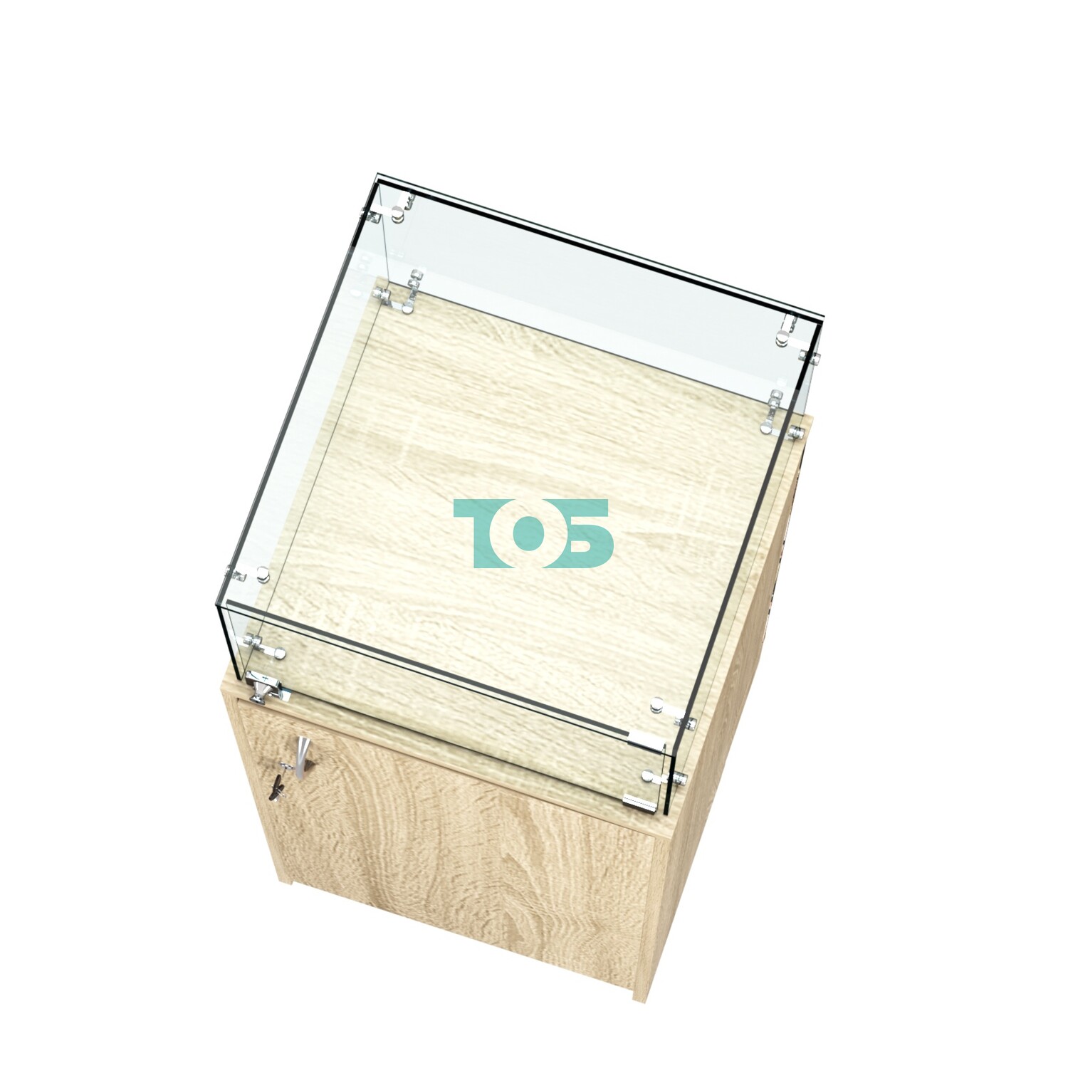 - верх - стеклянный, высотой 300 мм, на хромированных уголках;