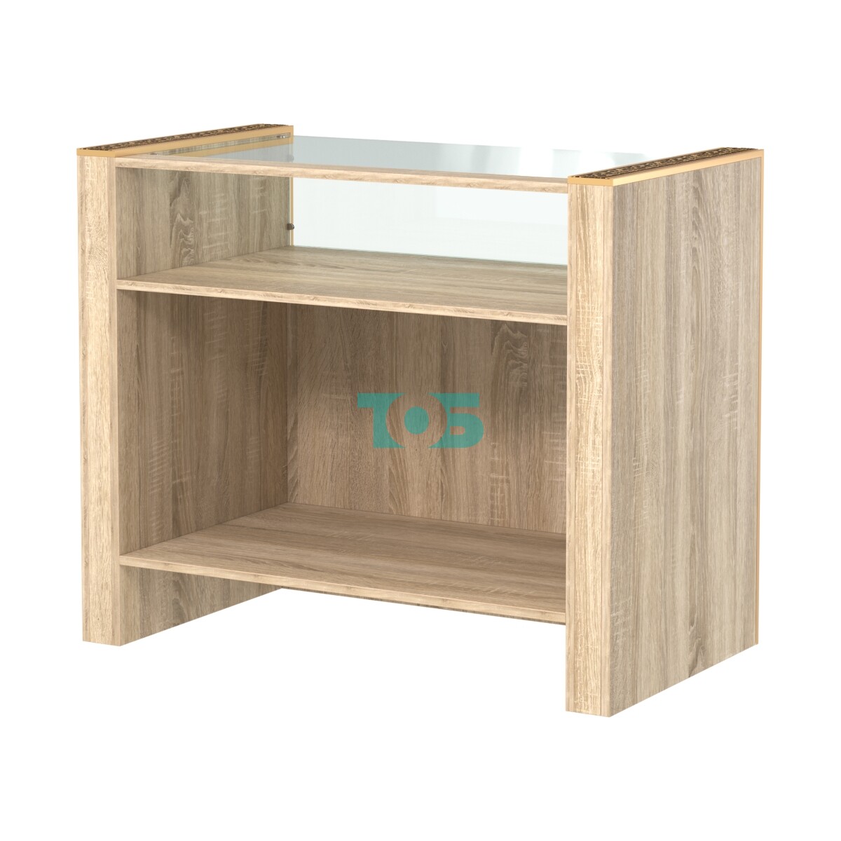 - представленная модель прилавка имеет отдельностоящую конструкцию с широкими боковыми стенками. При составлении модельного ряда из нескольких прилавков с декоративными молдингами торец последующего прилавка образует общую боковую стенку с торцом предыдущего, за счет чего итоговая стоимость группы прилавков будет снижаться;