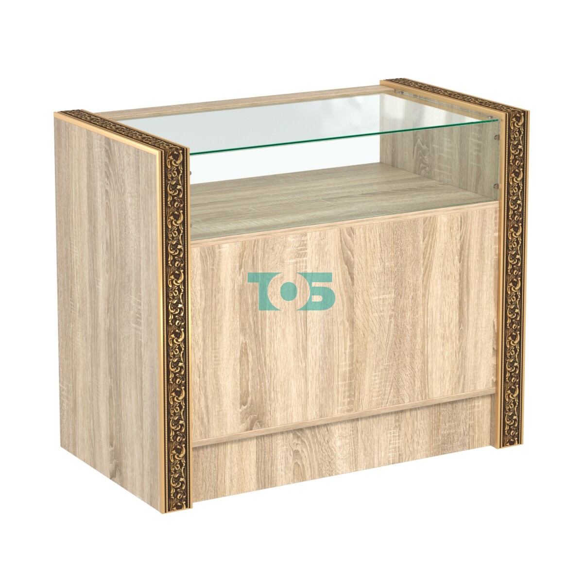 - правый и левый торец прилавка украшен цветными декоративными молдингами под золото;