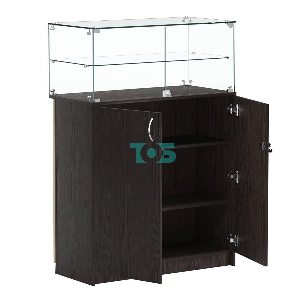 - со стороны продавца прозрачная часть прилавка укомплектована стеклянными дверками с замком;