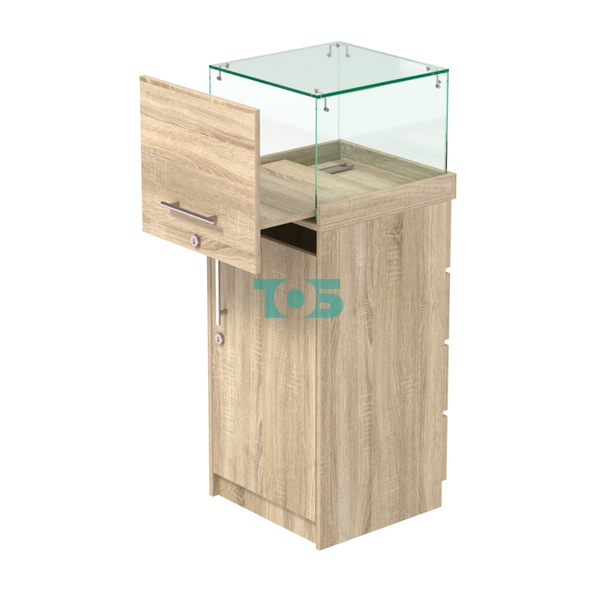 - в верхней части прилавка предусмотрена выдвижная панель с зеркальной задней стенкой и замком;