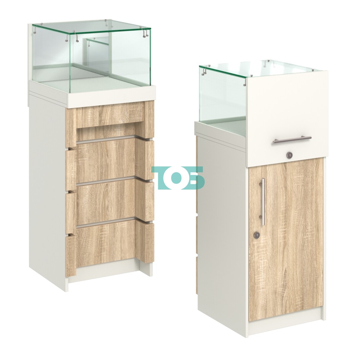 - прилавок изготовлен из ДСП 16 мм в различных цветах и прозрачного стекла с применением хромированной фурнитуры;