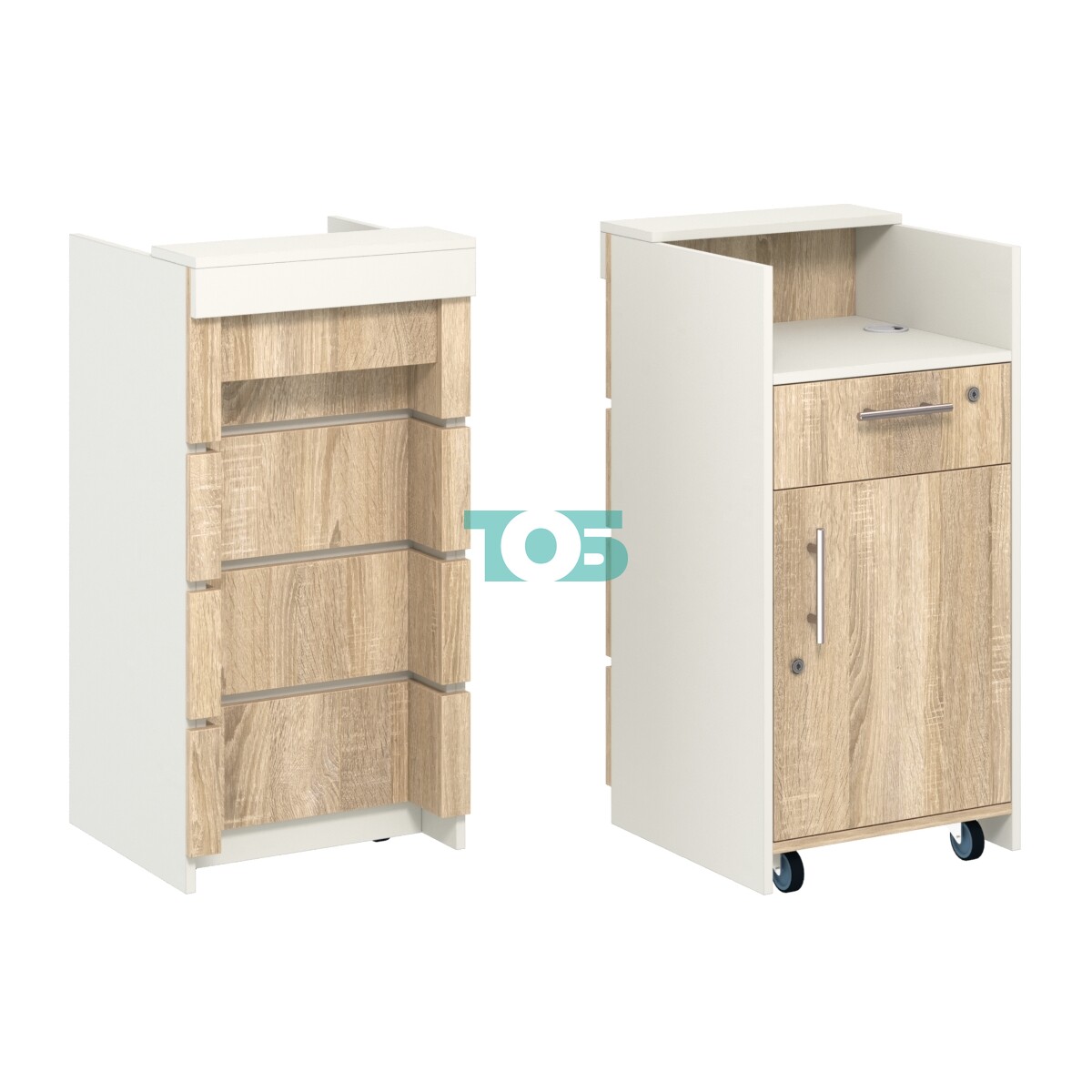 Отличия модели торгового кассового прилавка на колесах с утопленным фасадом №УФК-2-1: