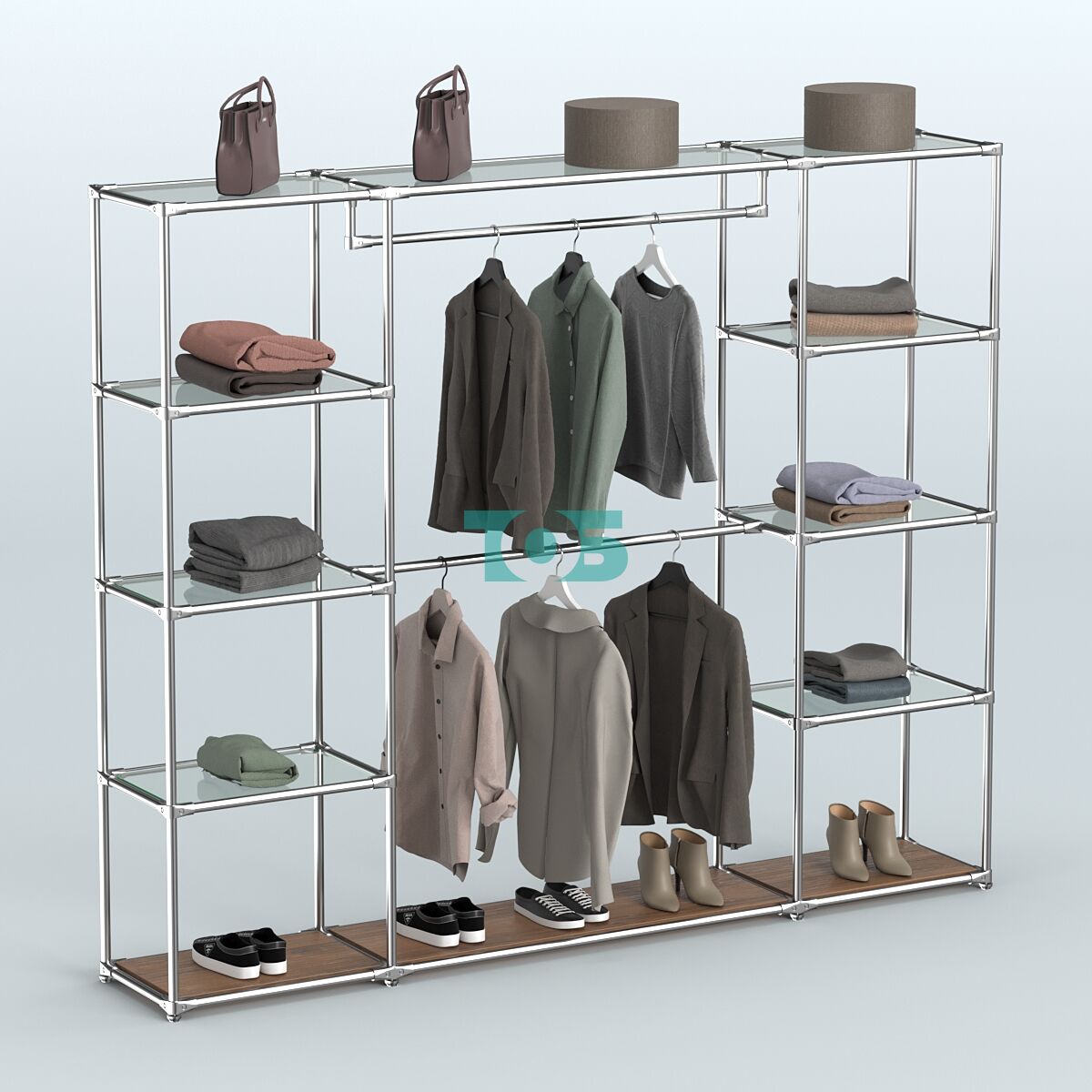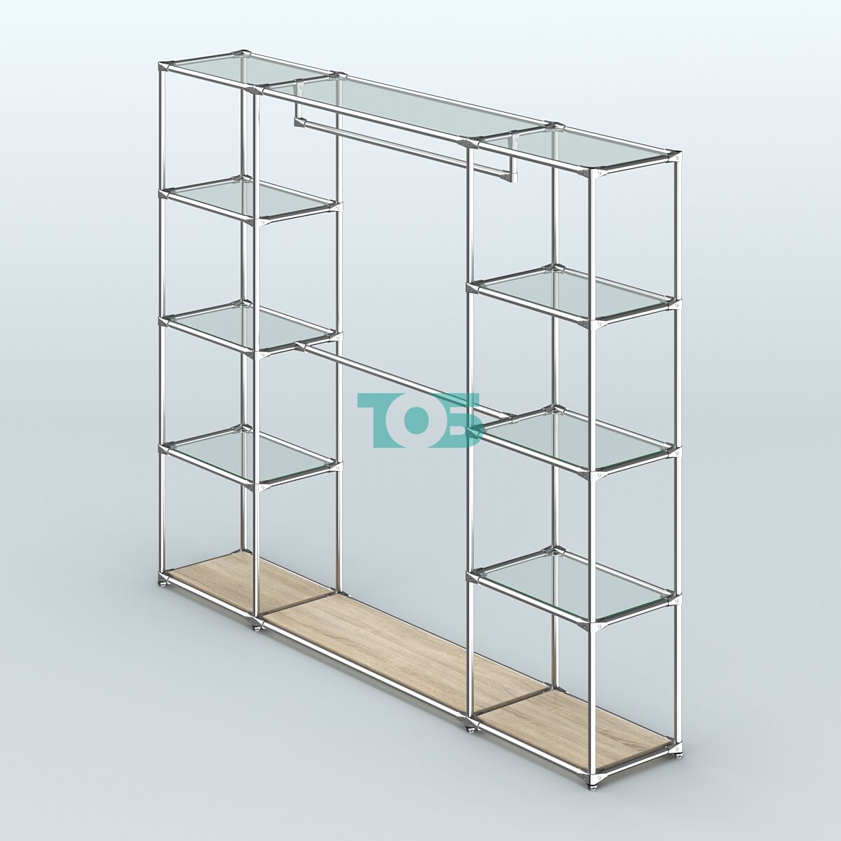 Отличия модели торговой системы ХРОМ без ДСП 2430 мм с прозрачными полками и поручнями №3: