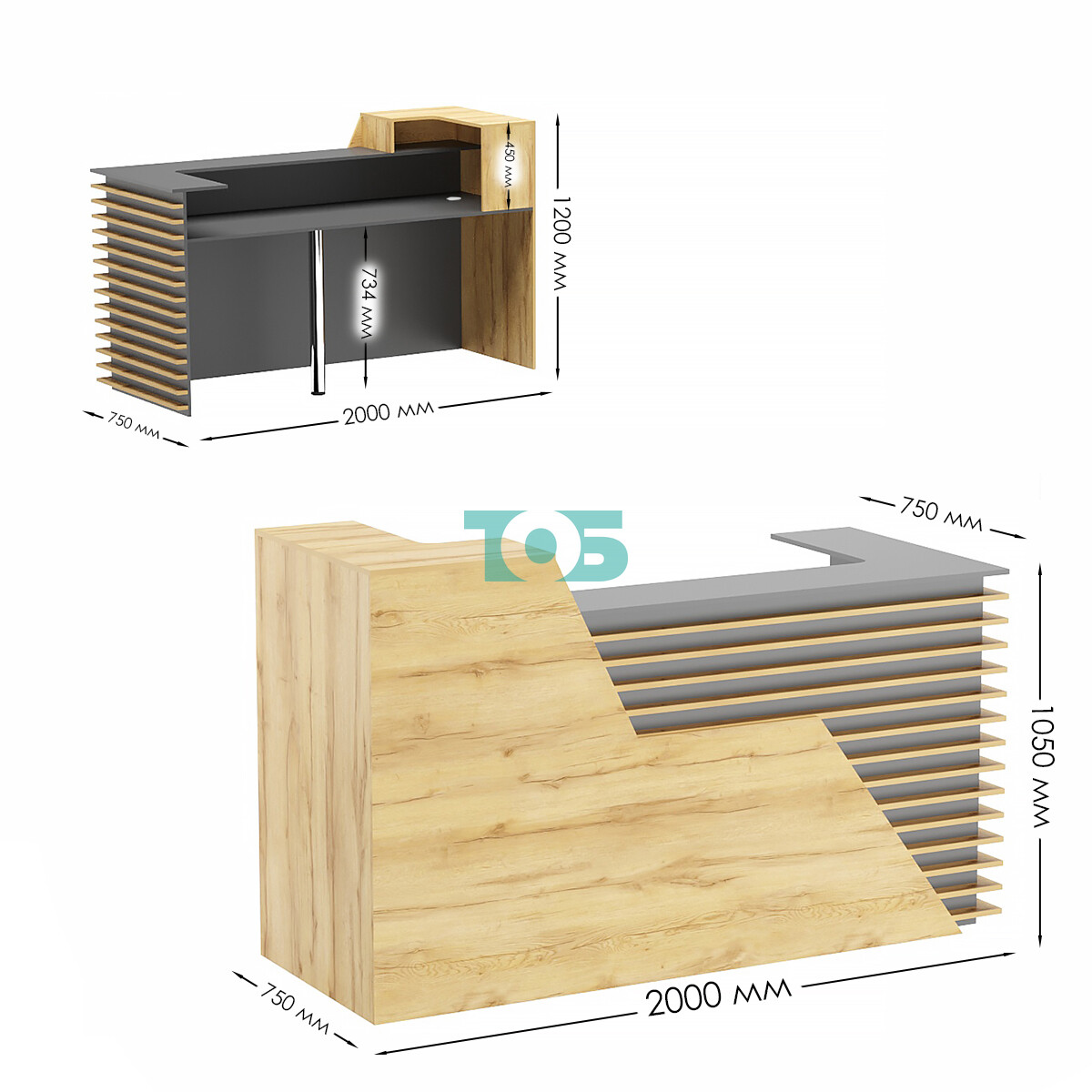 • Ресепшен АЛЬПЕН правосторонний, Дуб Золотистый и Темно-Серый