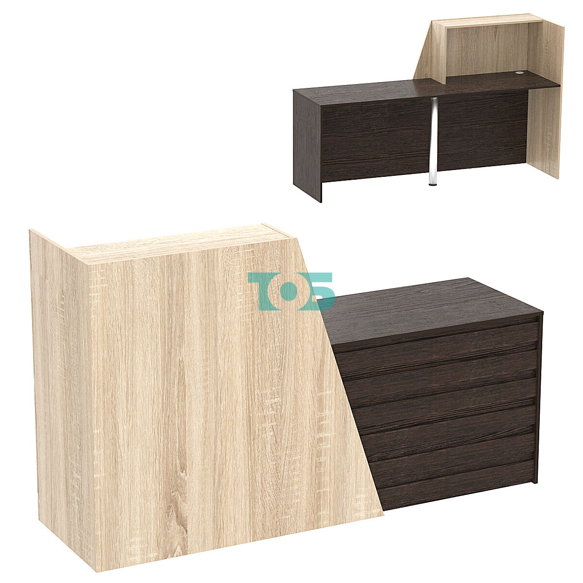 • Стойка ресепшен ГРАУНД №1А правосторонняя, Дуб Венге и Дуб Сонома