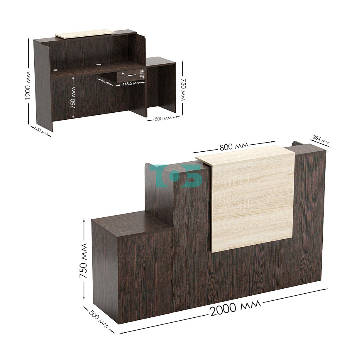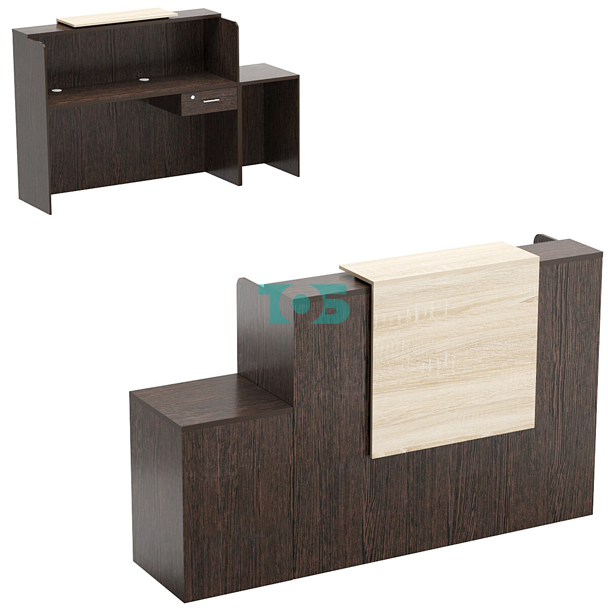 Функциональность: Наличие выдвижного ящика и приставного стола для выдачи товара делает ресепшен удобным и практичным в использовании.