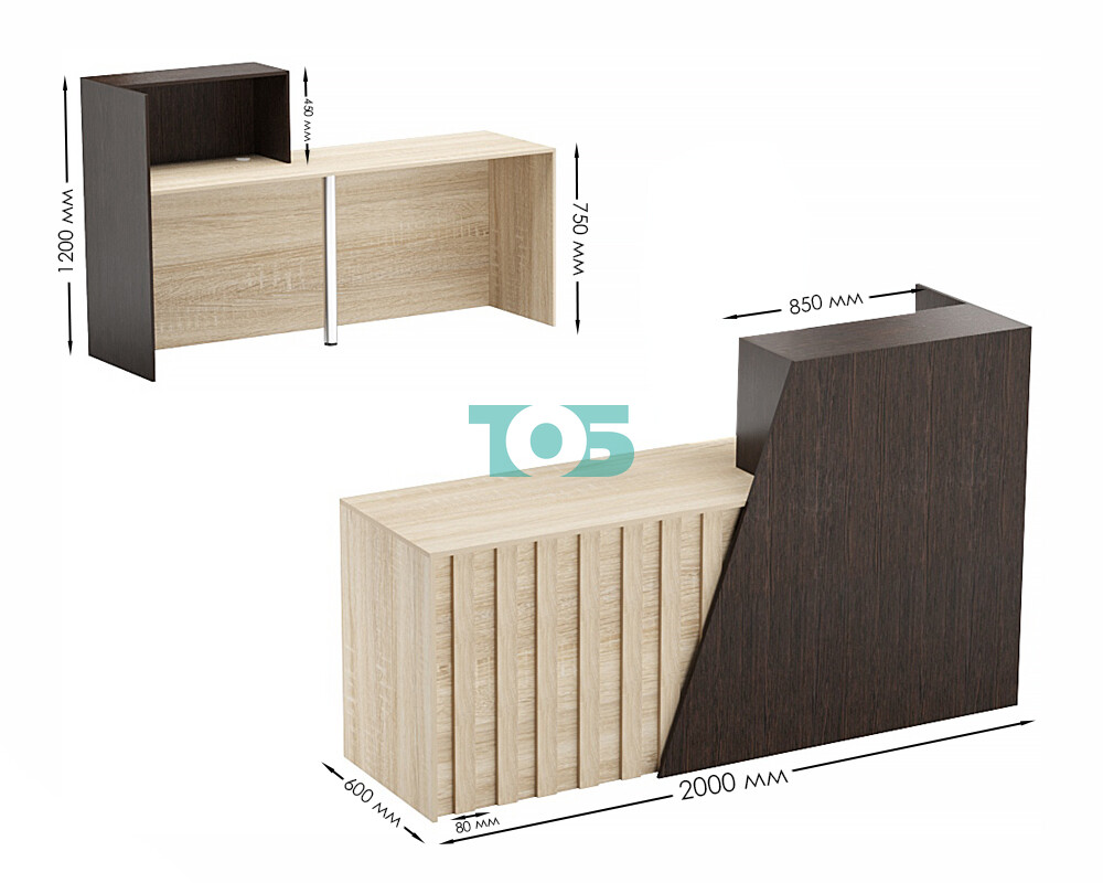 • Стойка ресепшен ГРАУНД №2Б левосторонняя, Дуб Венге и Дуб Сонома
