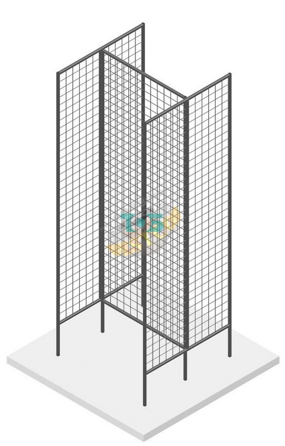Сетчатый модуль - сварная конструкция из сетки с металлическим каркасом. Сетка имеет размер ячейки 50х50мм, на прут которой одевают различные навесные элементы: крючки, кронштейны, полки, корзины, в зависимости от специфики продаваемого товара.