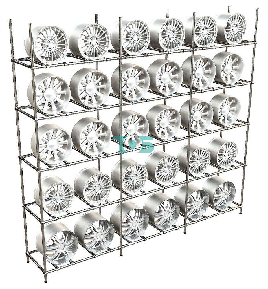 Торговый хромированный стеллаж пяти- секционный для демонстрации и продажи автомобильных шин №2150-5