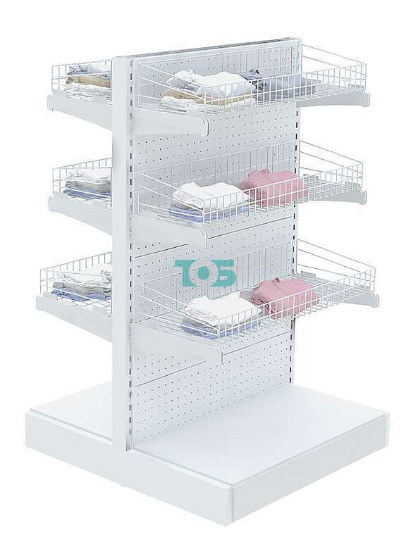 Стеллаж торговый металлический с сетчатой задней стенкой "ГРАФФ" №13Л-2.15-1 с полками , с лицевыми доп. стойками .