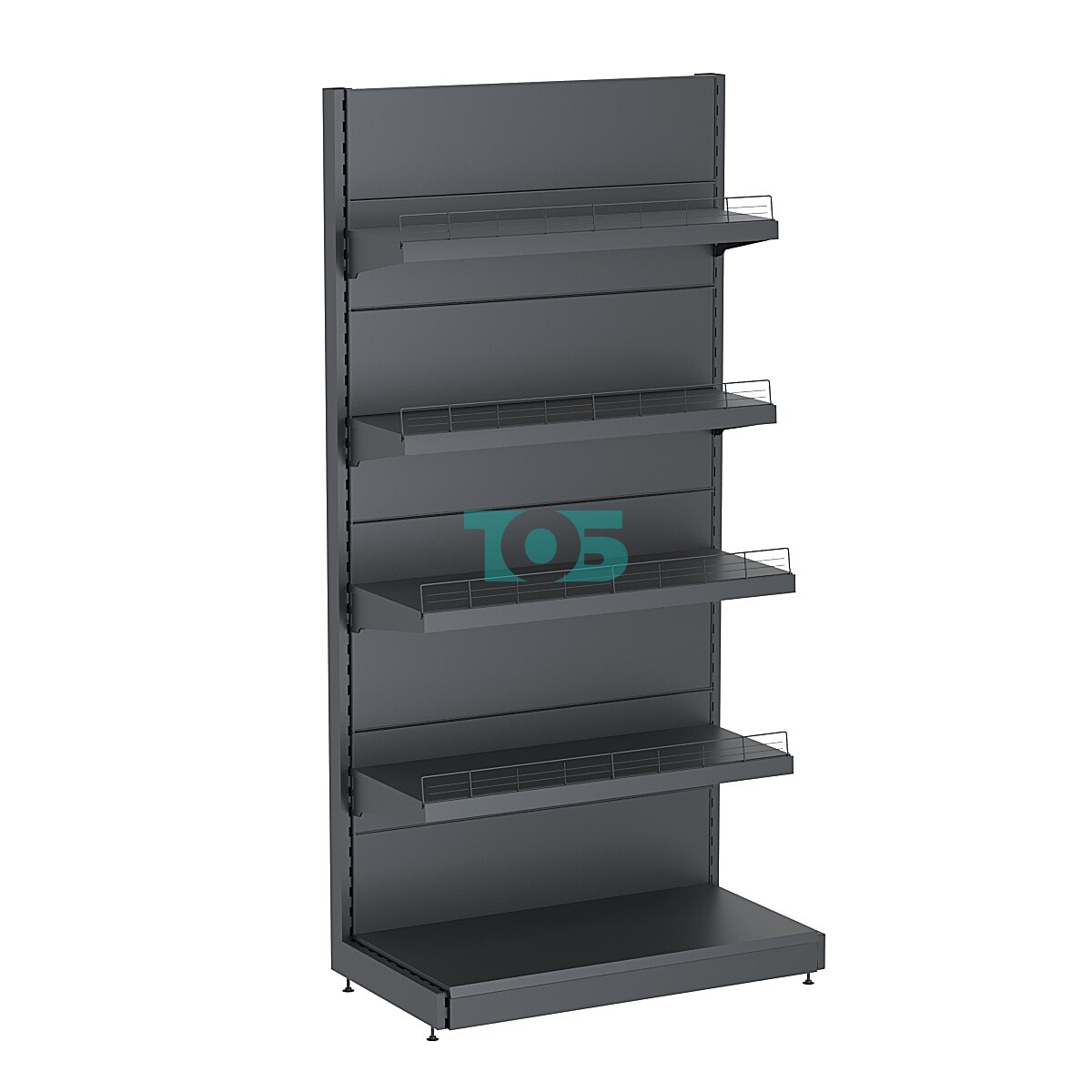 Задняя стенка стеллажа: выполнена из металлических гладких панелей. За дополнительную плату можно заменить на перфорированные панели или сетку.
