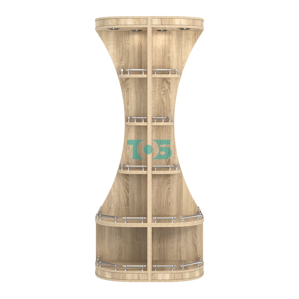 Островной высокий стеллаж в форме бутылки с подсветкой для продажи алкоголя серии ГАРАНТ "Бутылочка"
