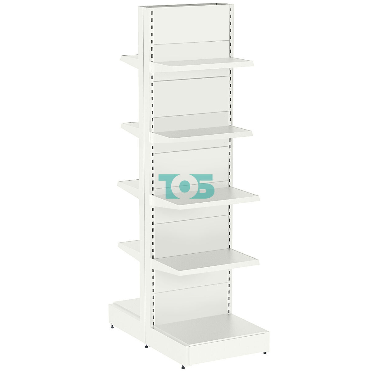 - стеллаж островной, полки расположены по обеим сторонам;