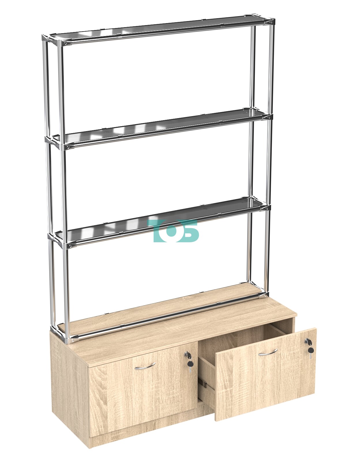Хромированный стеллаж с тонированными полками №1 с тумбой Т-15 представляет собой стильное и функциональное решение для организации пространства в вашем доме или офисе. Эта уникальная конструкция сочетает в себе современный дизайн и практичность, что делает её идеальным выбором для хранения различных предметов.