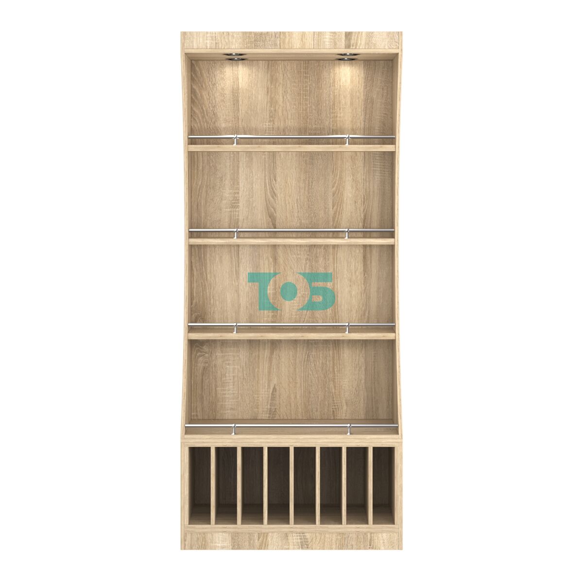 Подсветка: расположена в верхнем фризе, создаёт эффектную атмосферу и привлекает внимание к выставленному алкоголю.