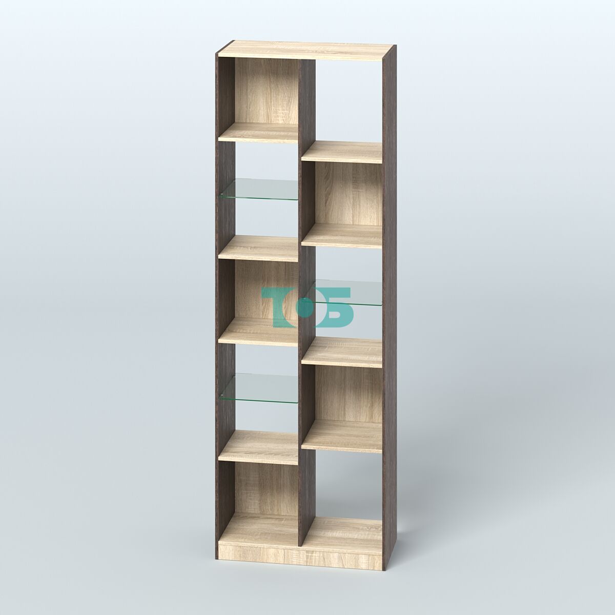 Отличия модели стеллажа из ДСП серии ЛОФТ №8-3 с полками стекло 5 мм: