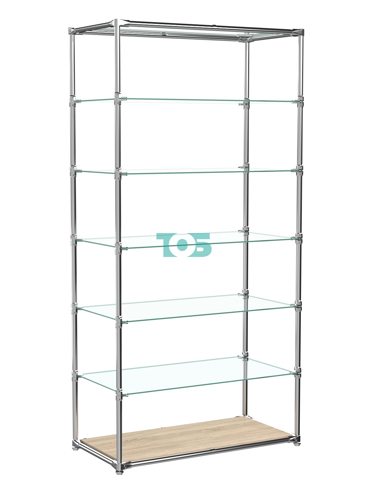 Полки: пять полок из прозрачного стекла толщиной 6 мм, регулируемых по высоте. Это позволяет оптимально использовать пространство и адаптировать стеллаж под различные нужды