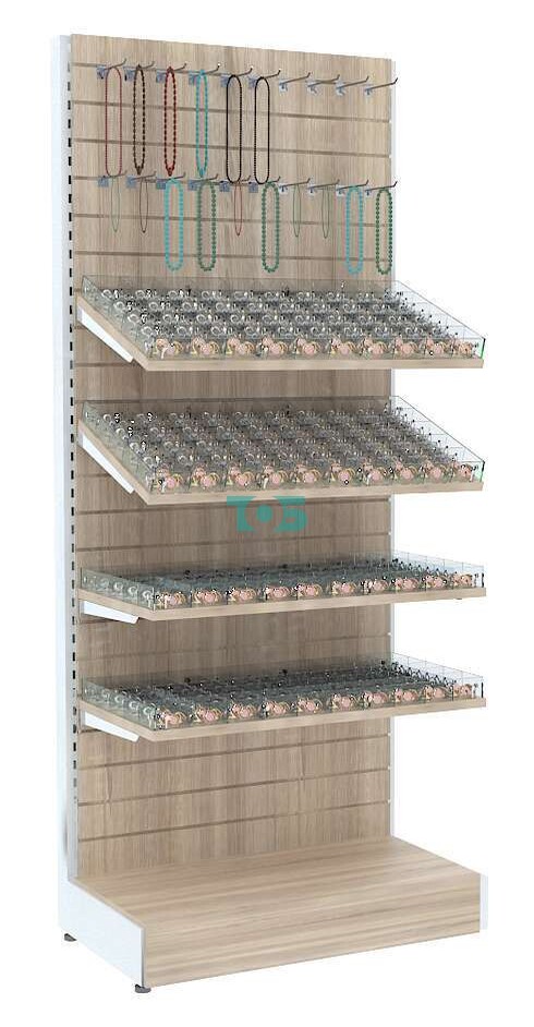 Стеллаж торговый металлический "ГРАФФ" №2-2.15-1ПТС с перфорацией, полками и торцевыми сетками