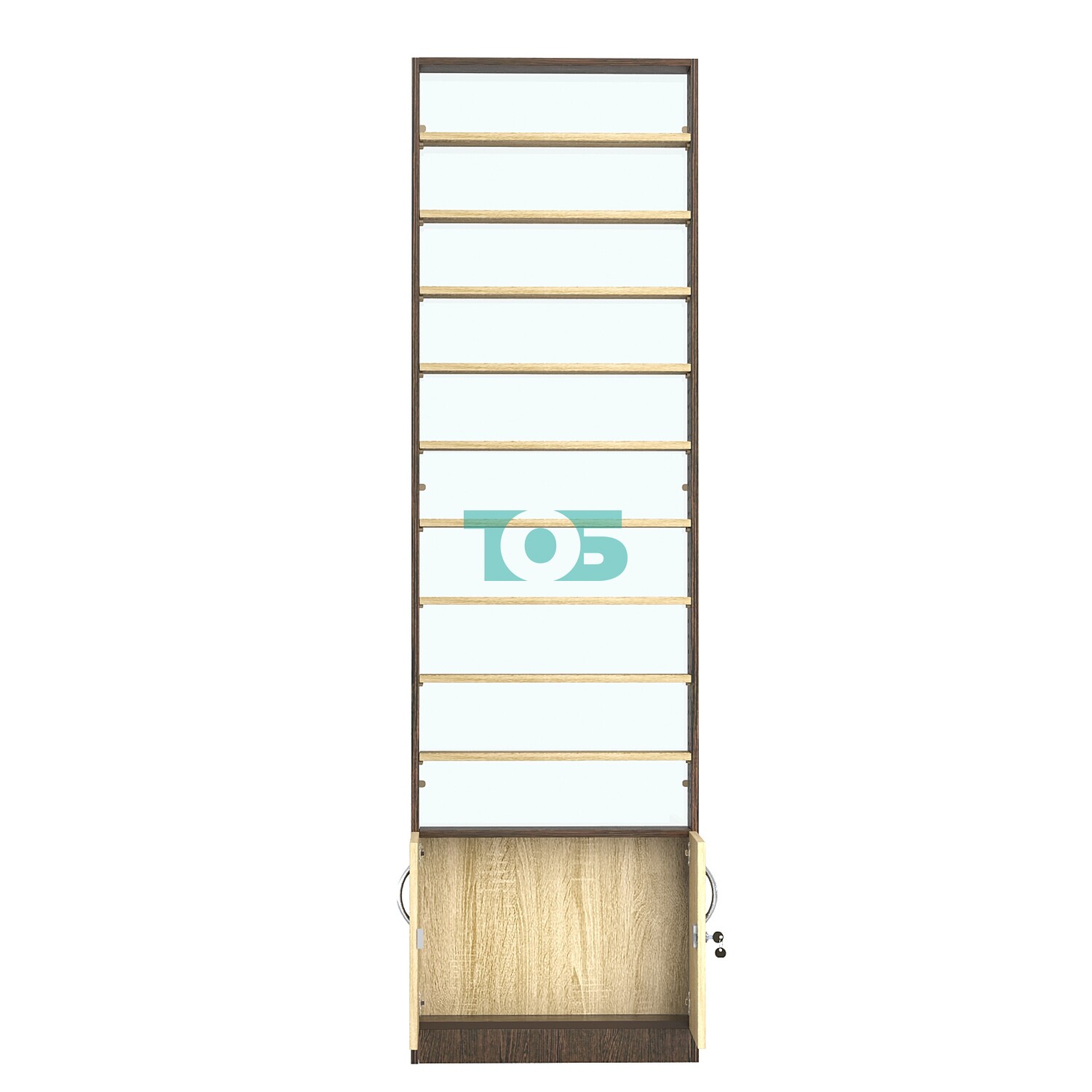 • Стеллаж из ДСП с 9-ю полками 100x600 мм серии LEVEL-9 №1-1 (З/C - СТЕКЛО), Орех