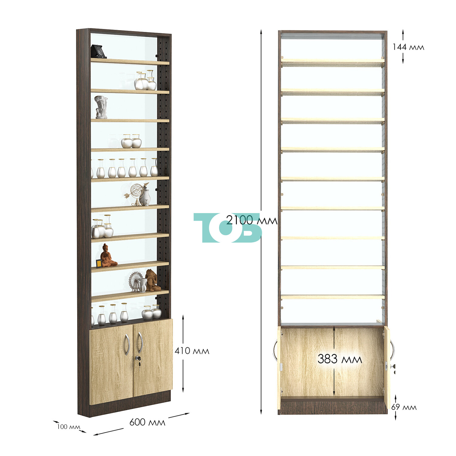 • Стеллаж из ДСП с 9-ю полками 100x600 мм серии LEVEL-9 №1-1 (З/C - СТЕКЛО), Дуб Сонома + Дуб Венге