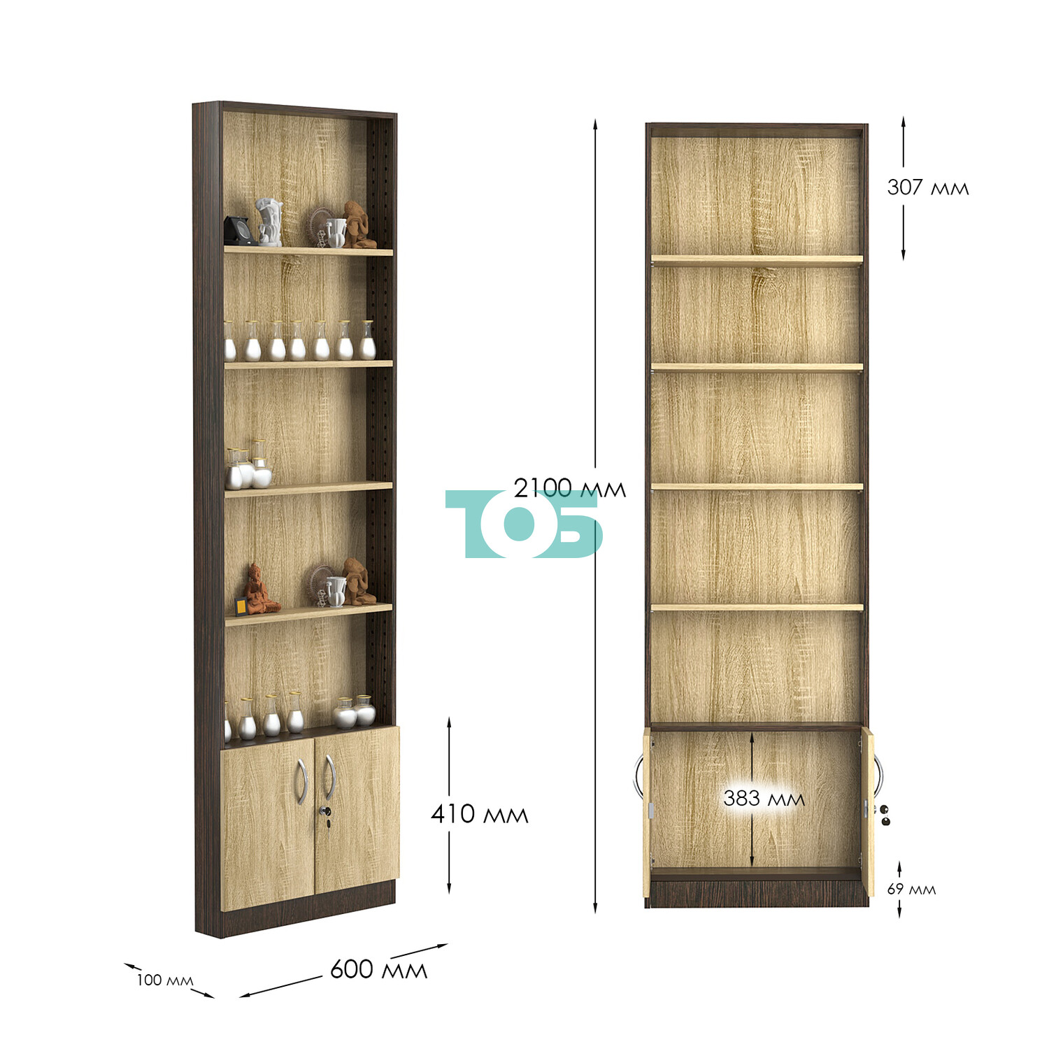 - нижний отсек закрыт распашными дверками с врезным замком (могут быть выполнены в разных цветах);