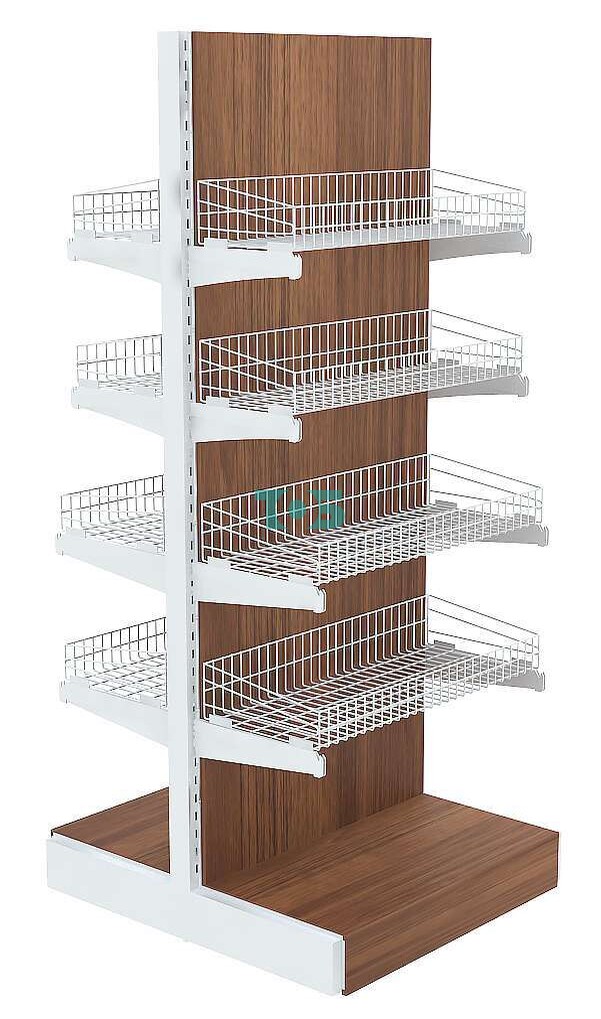 - стеллаж включает восемь металлических проволочных корзин белого цвета для демонстрации Товара покупателю;