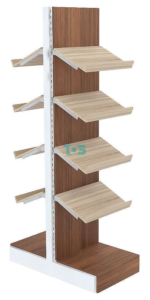 - стеллаж включает восемь наклонных полок из ДСП 16 мм в комплекте с хромированными полкодержателями для демонстрации Товара покупателю;