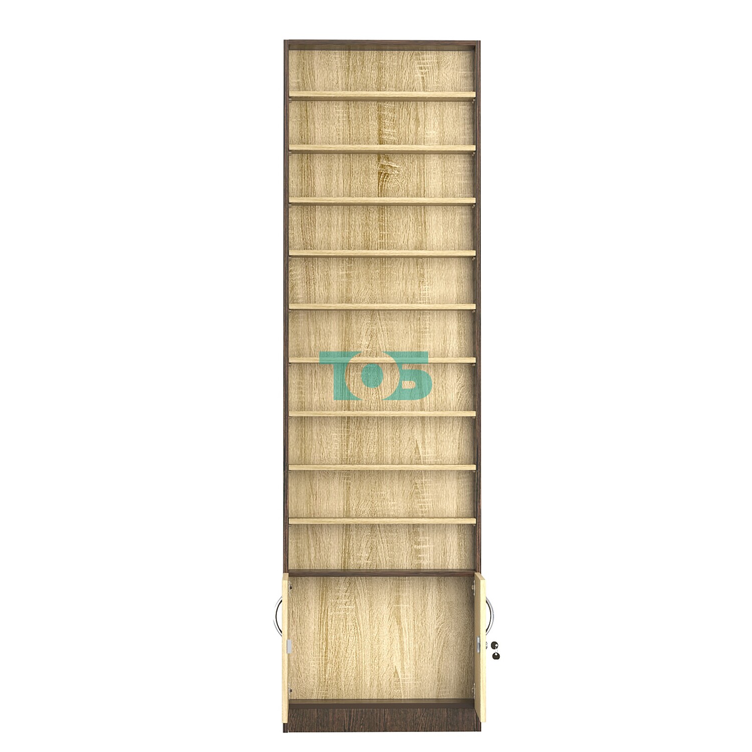 - нижний отсек закрыт распашными дверками с врезным замком;