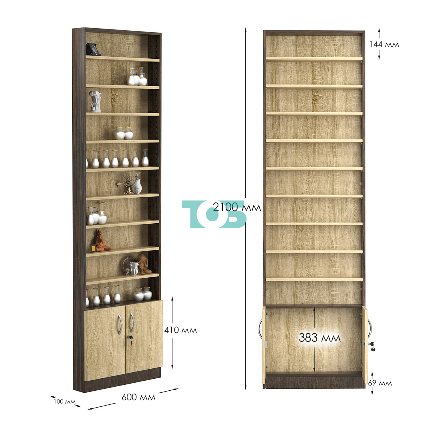 • Стеллаж из ДСП с 9-ю полками 100x600 мм серии LEVEL-9 №1 (З/C - ДВП), Дуб Венге + Дуб Сонома