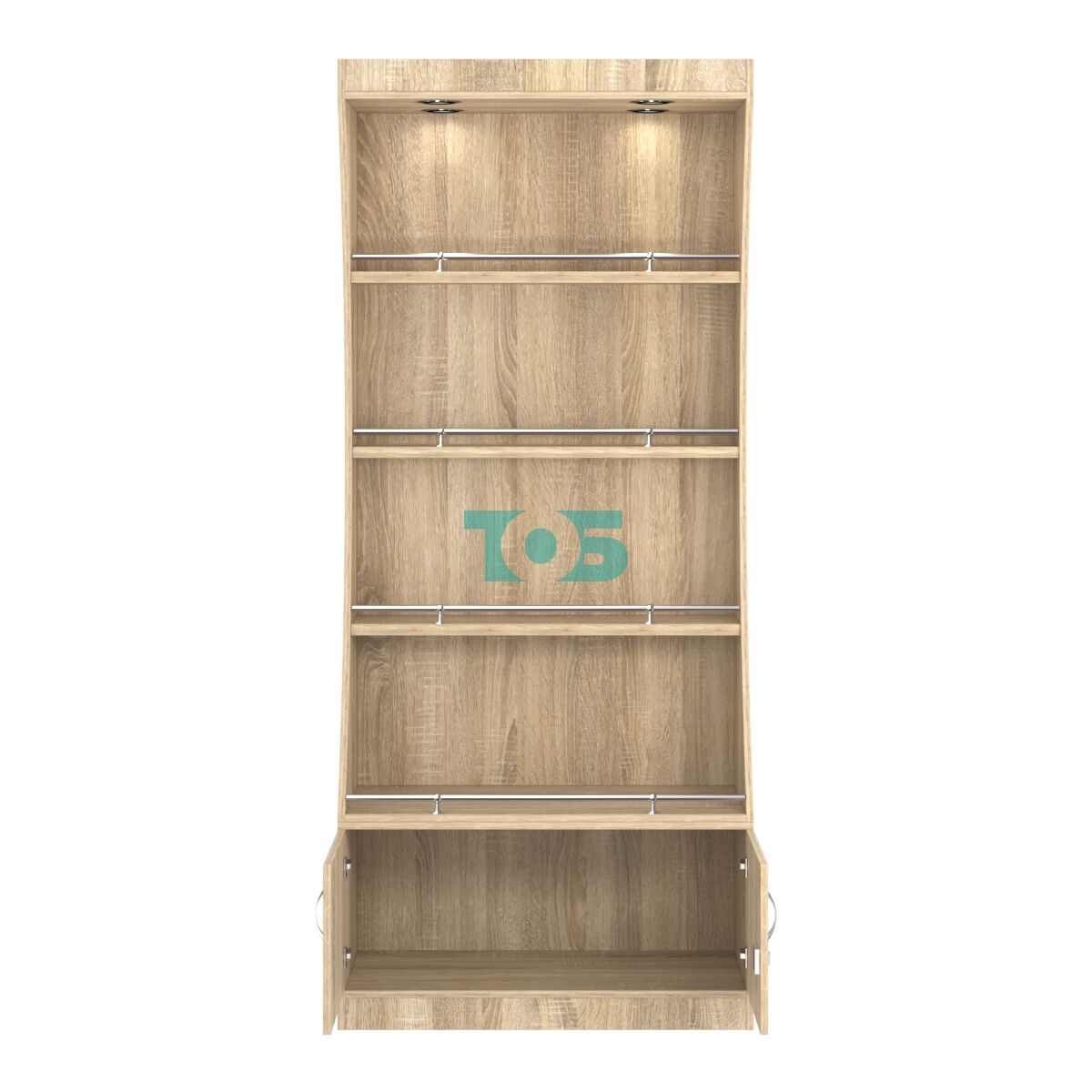 Подсветка: расположена в верхнем фризе, создаёт эффектную атмосферу и привлекает внимание к выставленному алкоголю.