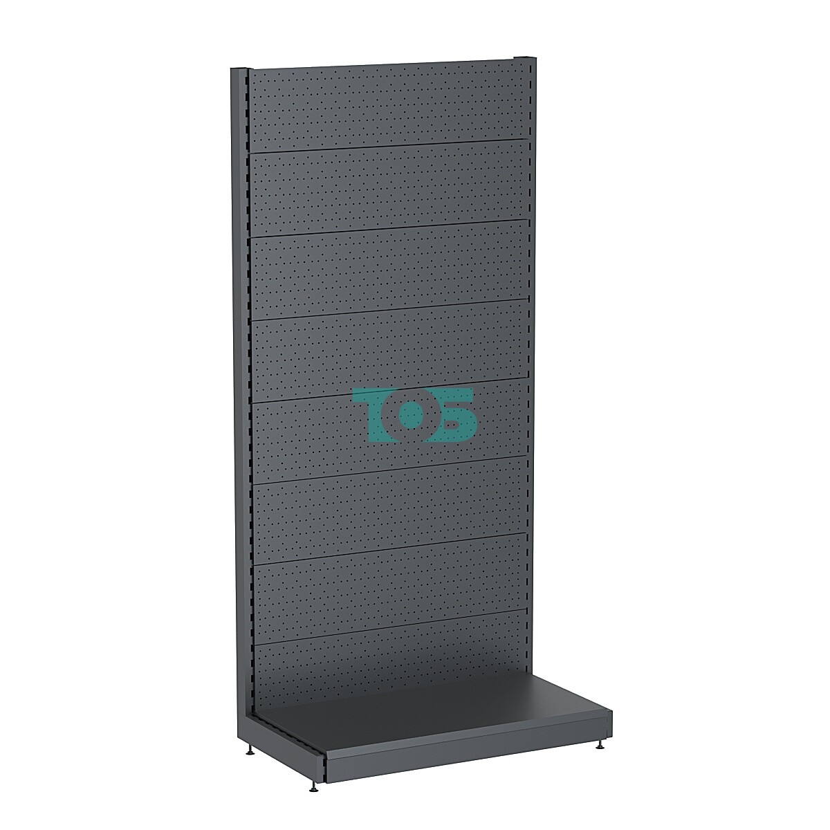 Задняя стенка стеллажа: выполнена из металлических перфорированных панелей. Есть возможность замены на гладкие металлические панели или сетку.