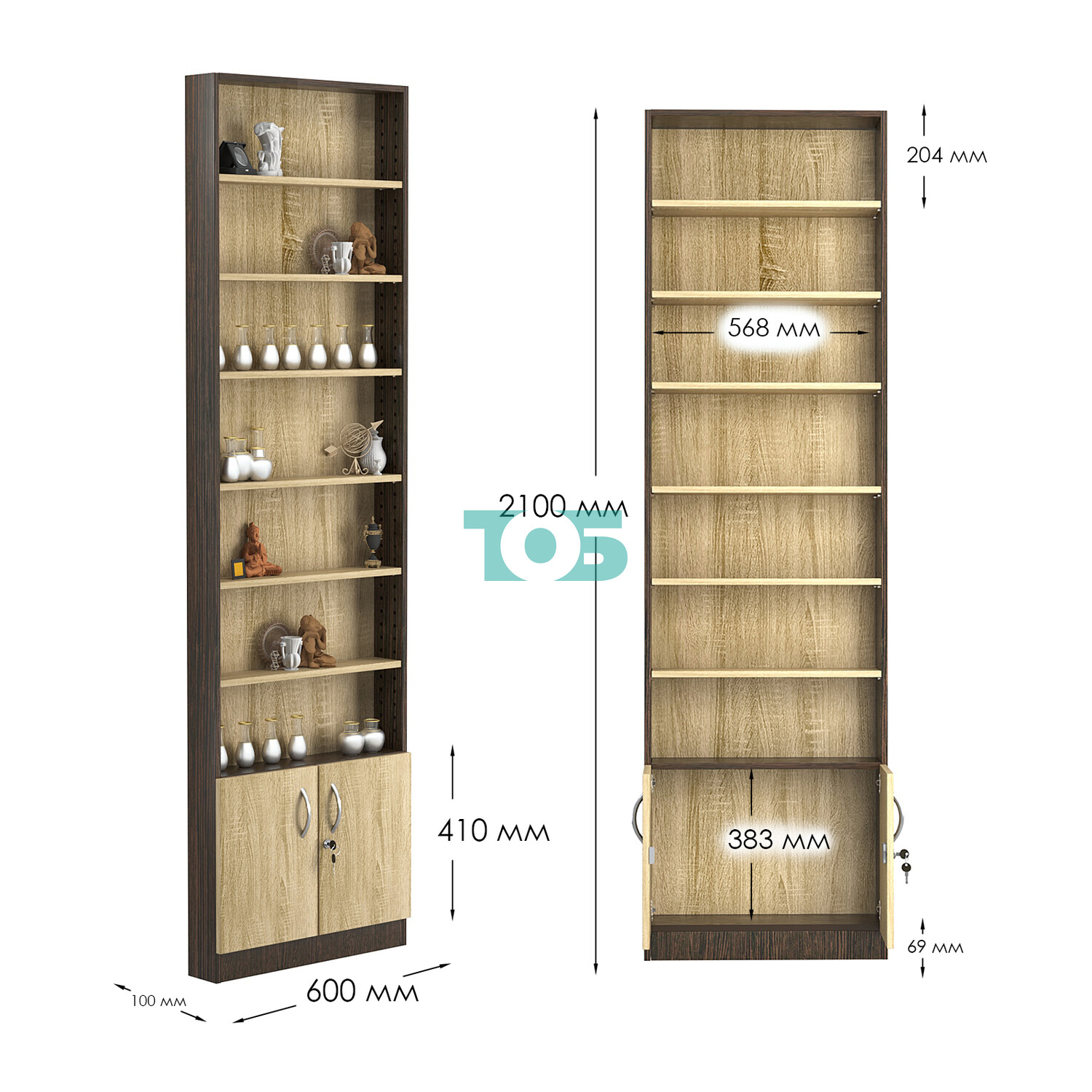 - нижний отсек закрыт распашными дверками с врезным замком;